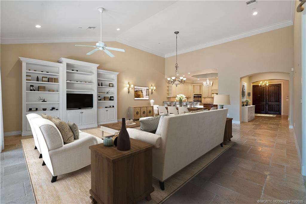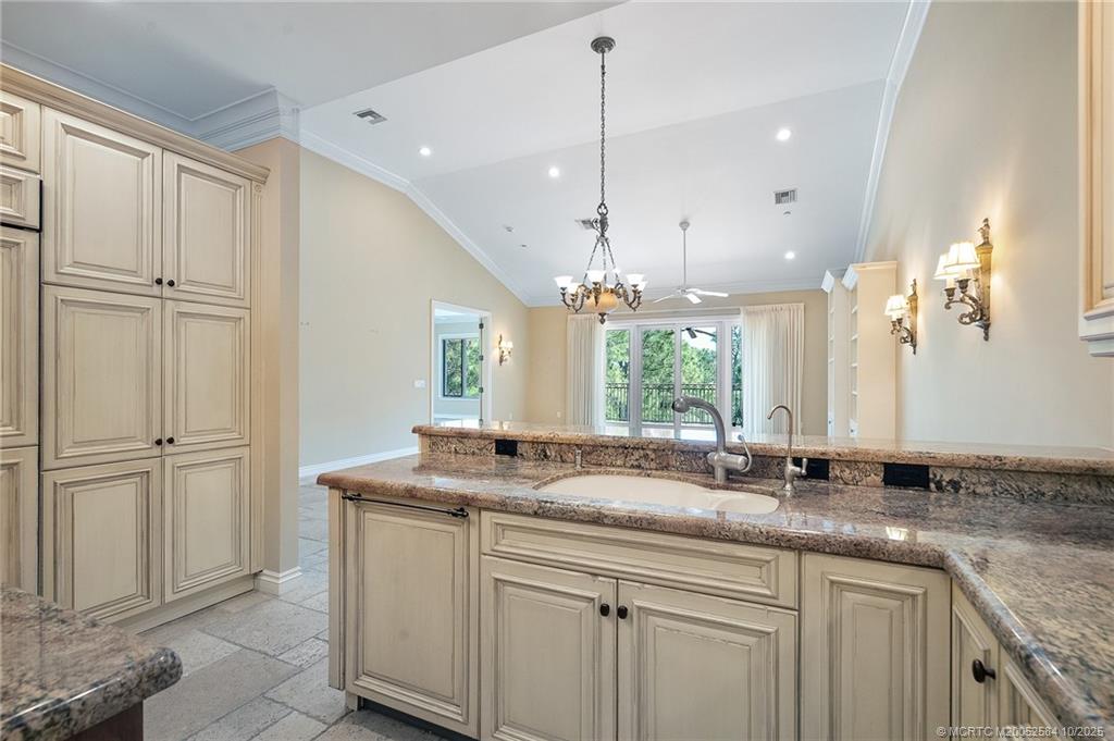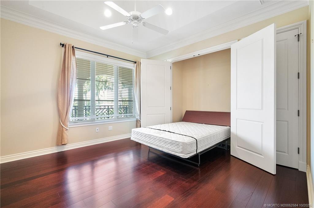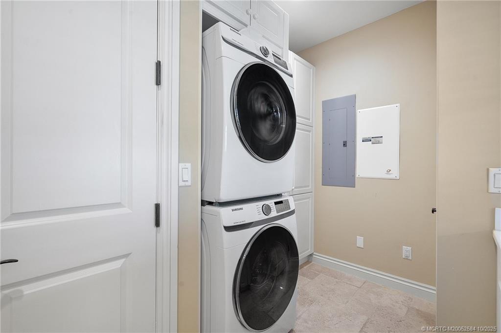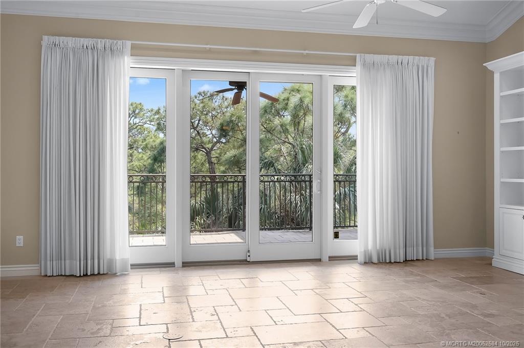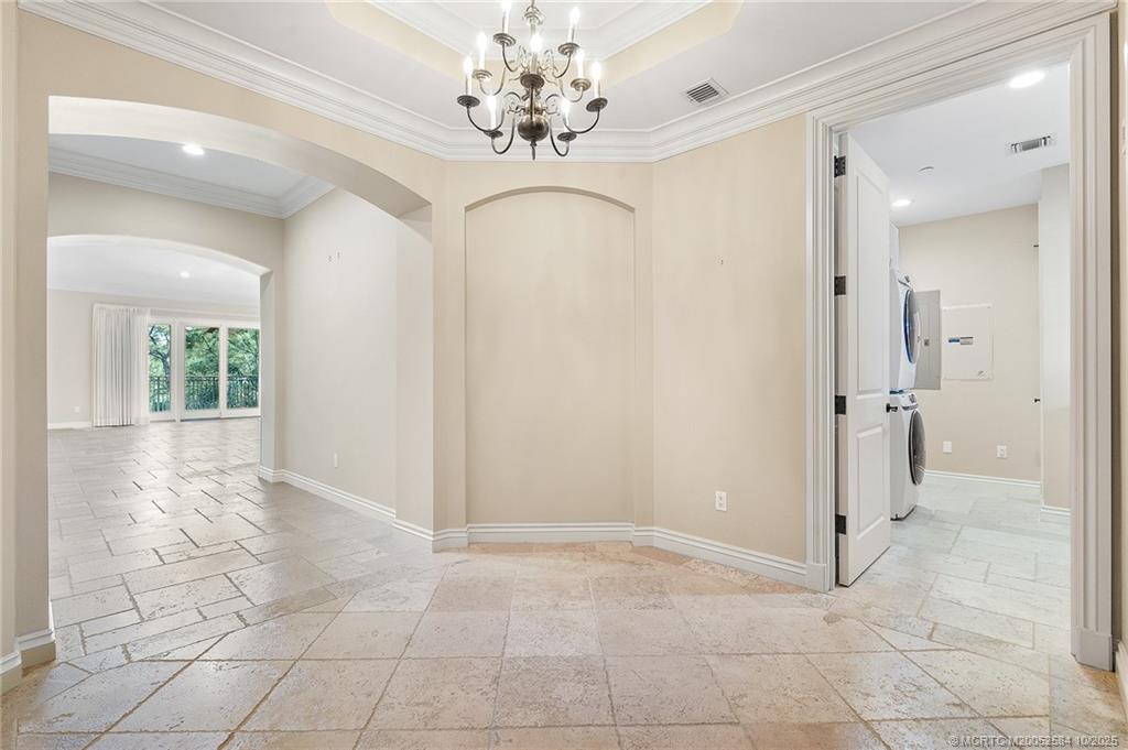 Discover this beautiful penthouse suite at Willoughby Crescent, a quality-built community from 2005 that's centrally located with easy access to I-95 and the Turnpike, near restaurants and shops, yet tucked away to ensure privacy. This top-floor, 2, 077 square foot condo is just steps from the community pool, clubhouse, grill, and fitness center. Inside, you'll find 2 BRMs, 2 BTHs, extensive crown moldings, coffered ceilings, impact doors & windows, vaulted ceilings, 8-foot solid wood doors, & covered balcony overlooking the preserve, plus attic space for additional storage. The kitchen opens to the great room with a breakfast bar, granite countertops, newer appliances & light wood cabinets. The primary bath features a marble countertop, dual sinks, water closet & separate tub and shower with a frameless glass door. The 2nd bedroom includes a space-saving Murphy bed, allowing room for a desk or crafting table. Call for your private tour today! All dimensions are approximate