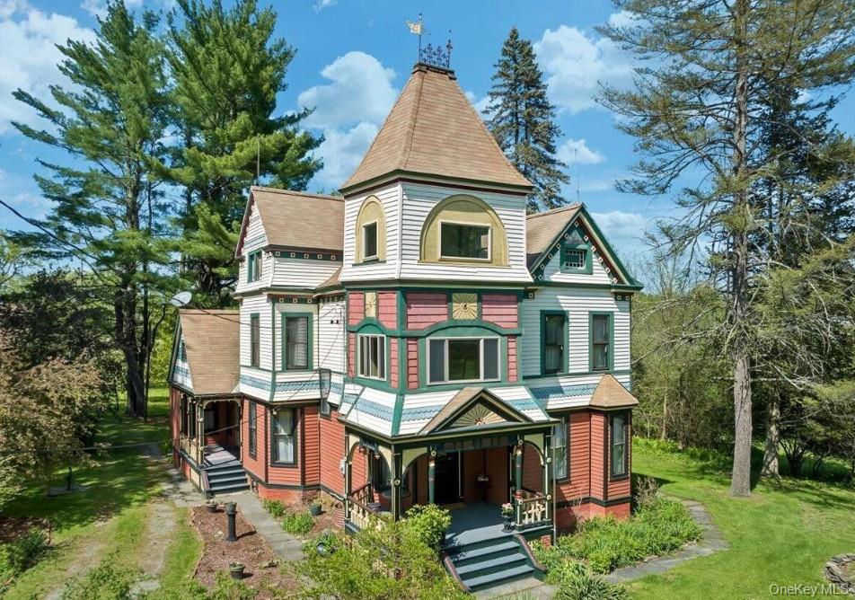 Iconic Queen Anne Victorian - Historic Gem with Adaptive Reuse Potential. Stunning Queen Anne Victorian property listed on the Historical Registry—a distinguished asset that combines architectural significance with both residential and commercial potential. Situated on 2. 77 acres, this landmark property showcases timeless design elements such as ornate woodwork, stained-glass windows, inlaid hardwood floors, and original corbels and medallions, creating an ideal foundation for a high-end destination business, adaptive reuse, or strategic investment. Potential concepts include boutique hospitality ventures, restaurants, retail or service establishments, artist studios, live-work concept or just a spectacular weekend/fulltime home. The expansive main level features generous, light-filled rooms, formal parlors, dining areas, a country-style kitchen, office/den space, and full bath. The second floor offers five large rooms with ample storage and balcony access plus a secondary bonus room. The third floor, currently unfinished but plumbed for a bathroom, presents an excellent value-add opportunity. The detached Carriage House further enhances the property’s income-producing potential. With its own unique character and footprint. (H) Hamlet zoning allows for a wide range of uses including artist studios, bed & breakfast, hotels, inns, restaurants, banks, funeral homes, retail, service, day-care, gov’t offices, home occupations. Located in the heart of the Greenville hamlet, this property benefits from proximity to the vibrant Hudson Valley and Great Northern Catskills corridor, a region experiencing significant growth in tourism, remote work hubs, and destination-driven businesses surrounded by golf courses, hiking trails, breweries, ski resorts, and farm-to-table dining. The property is just 30+ minutes from Albany, Hudson, and Saugerties, and approx. 2 hours from New York City, it’s a rare opportunity for a weekend or full-time home, destination business, adaptive reuse, or strategic investment.