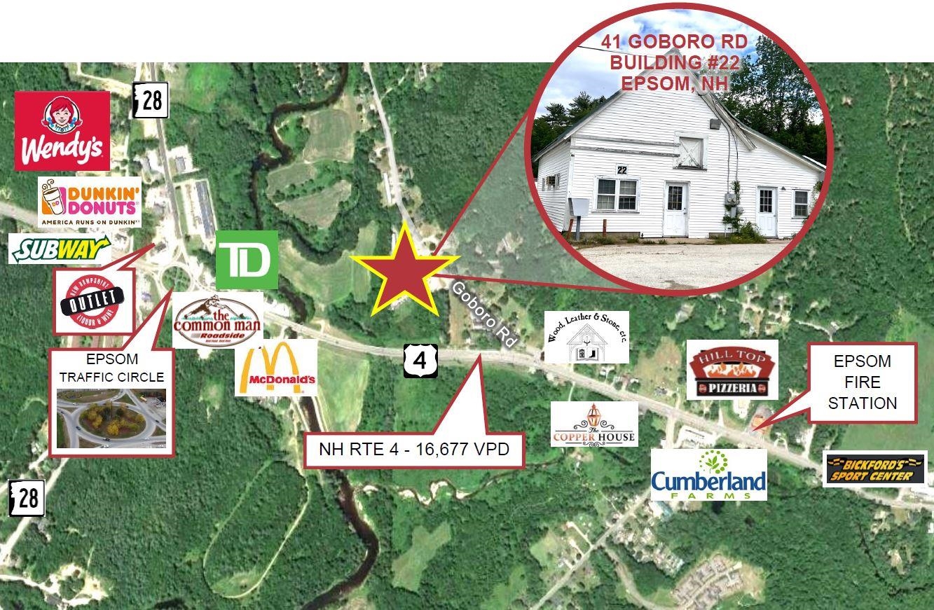 This versatile 1. 5 story office/retail building is available for lease at $1200 per month, plus utilities. The space offers private offices, open areas, and a private half bath. It is well-suited for a variety of small businesses. Previous uses include a welding shop, drywall company, off-road Jeep alteration service, antique car storage and more. It would make a great small business office, retail store, flower shop, workshop, storage facility among others. Property is located off a lighted intersection just minutes from the Epsom Traffic Circle, Rt 4, Rt 93, and Rt 393.