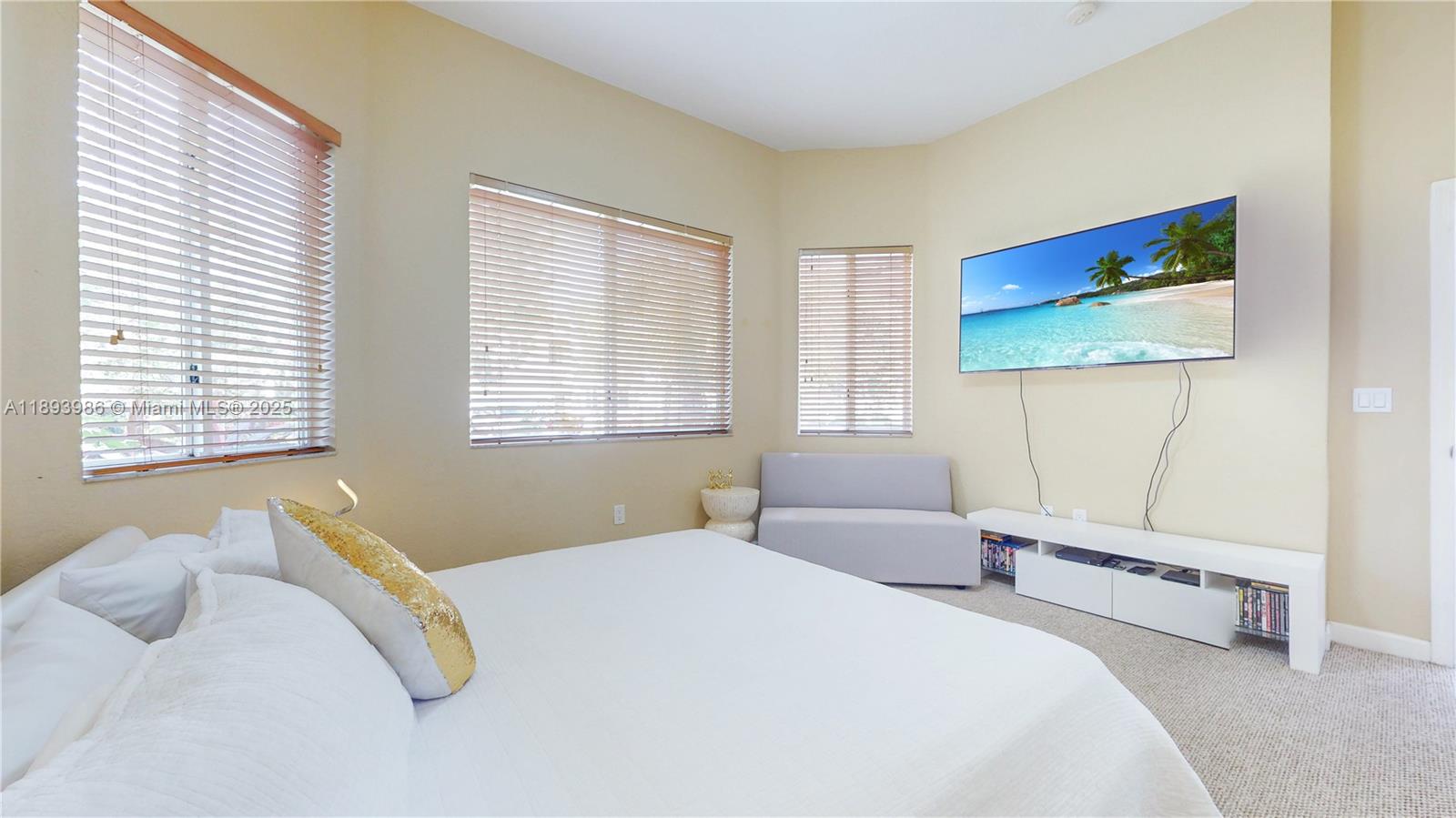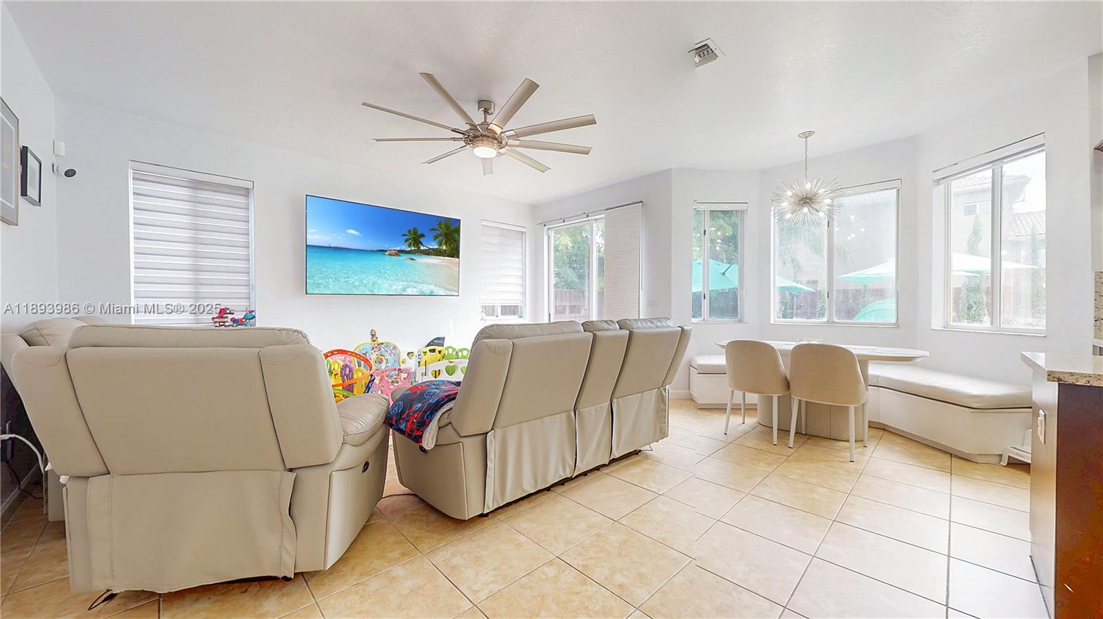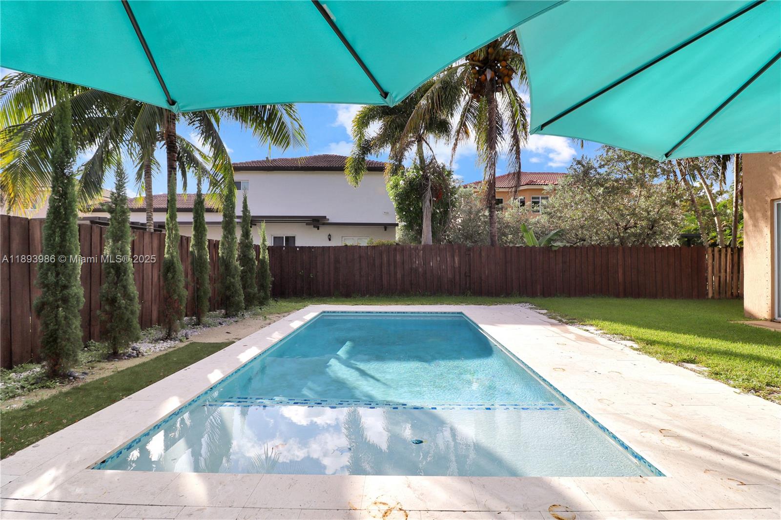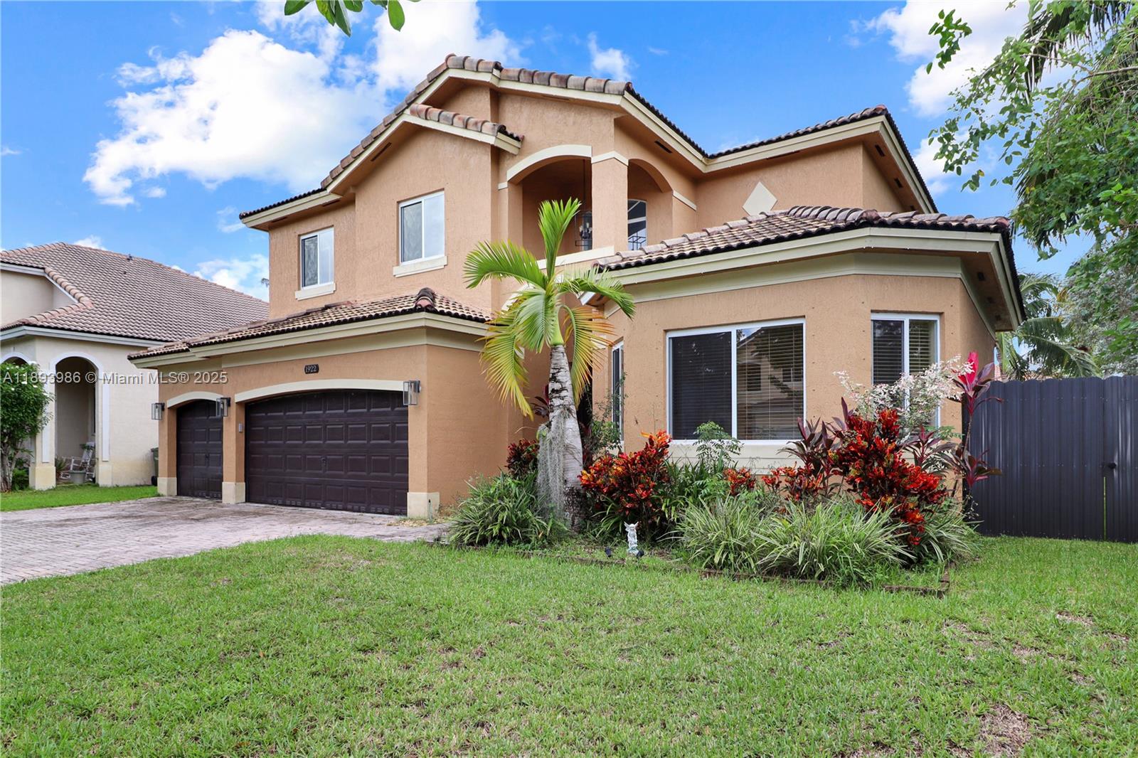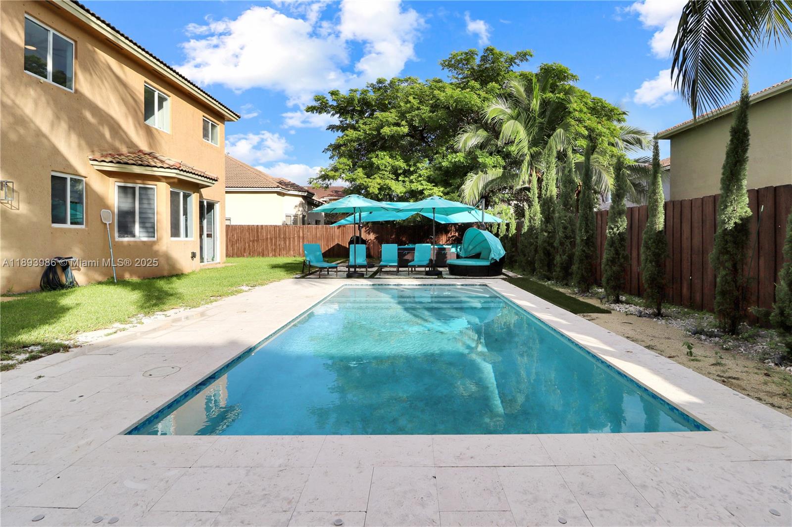 Welcome to this turnkey two-story home located in the luxurious Palm Isles Estates. Perfect for families, this spacious property features 4 bedrooms and 3. 5 bathrooms, including a convenient downstairs bedroom with its own ensuite bathroom. Key highlights inside include vaulted ceilings, a newer HVAC system for year-round comfort, stylish tile flooring downstairs, and a striking hardwood staircase with upgraded metal railings. Outdoor enjoyment awaits with a modern private pool, combining modern amenities with a luxurious outdoor living experience. The value-packed HOA offers 24/7 security guards and patrols, AT&T internet, cable, access to the golf course and butterfly park, a Tot Lot, trash pickup, and maintenance of common areas. A clubhouse is also available for an additional fee.