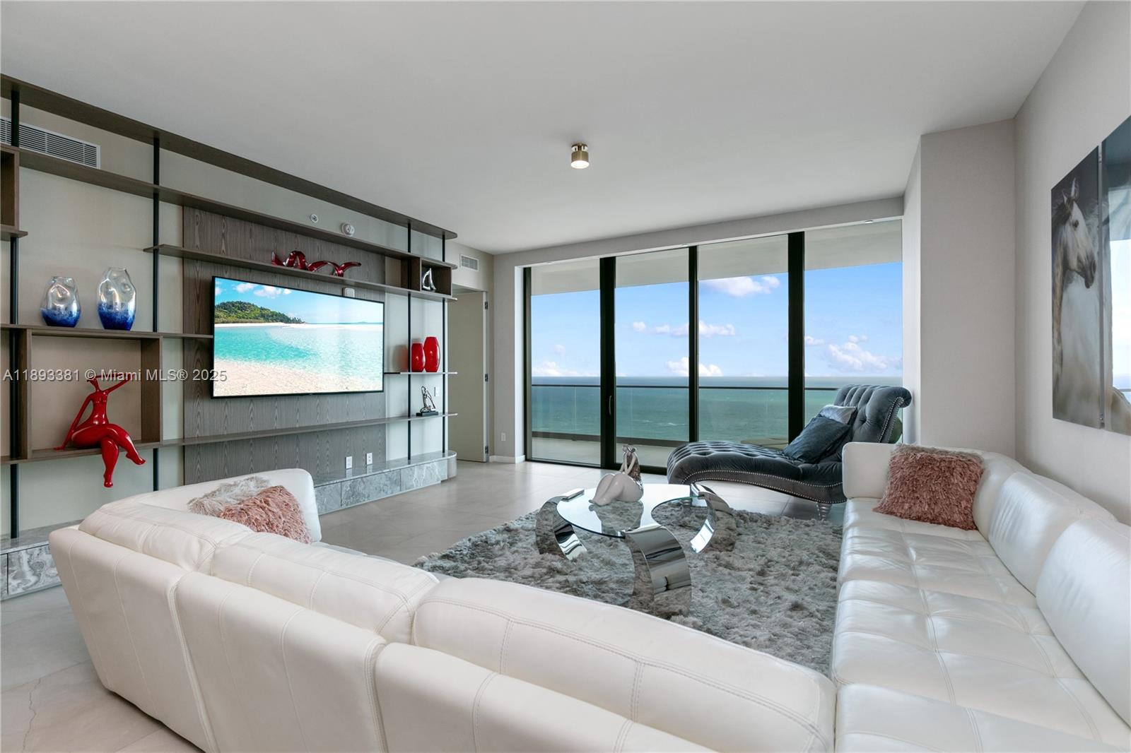 Experience the pinnacle of luxury in this 4-bd 5. 5-bth Armani Casa masterpiece on the 34th floor. This flow-through residence offers breathtaking ocean & city views from two expansive private balconies. Designed by Armani/Casa, completed in 2019 the home features floor-to-ceiling glass windows and a private high-speed elevator. The gourmet kitchen boasts European cabinetry, an island, a Sub-Zero fridge/freezer, Wolf oven, wine cooler, all state-of-the-art appliances. Enjoy an amenity-rich lifestyle with over 35, 000 sq ft of premier features: private oceanfront restaurant, bar, cigar room, game room, fitness center, spa, heated pool, jacuzzi, dog park, beach service, cinema & 24-hour valet/concierge & security. Interior SF 3176 SF Balconies 886 SF Total SF 4062, per Developer Floor Plan.