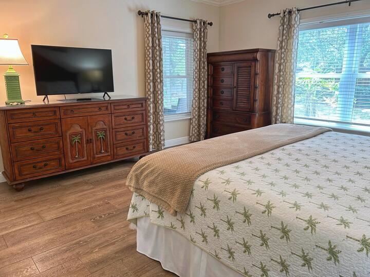 Huge 3 bedroom 2 bath 1526 sq ft condo to call home full time, part time or vacation rent and use as needed. Sale includes GARAGE #3 , furniture and furnishings move in ready. The condo is across the street from Ocean Hammock boardwalk to the beach by Sea Colony and a block away from the brand new state of the art Publix Shopping centre. New HVAC and granite countertops in kitchen. Wood look tile throughout for easy care and large master bedroom features master bath with double sinks, soaking tub and walk in shower. Screened porch is short distance from the newly refinished pool. Enjoy a small 18 unit complex with the convenience of St Augustine Beach location and assigned parking and personal garage for all your toys. You have to see this one like no other condo in St Augustine Beach.
