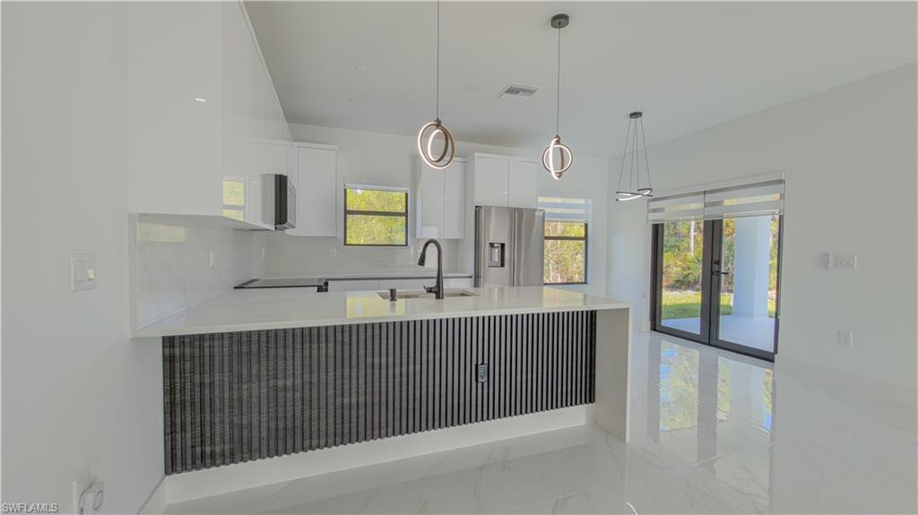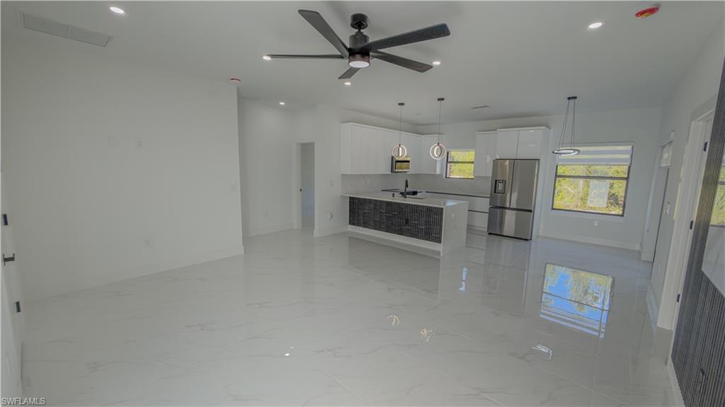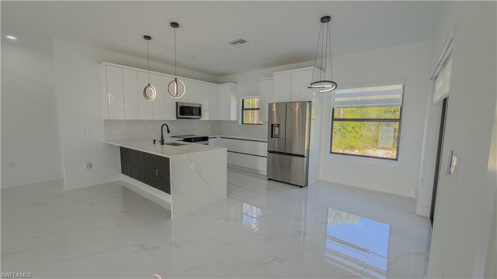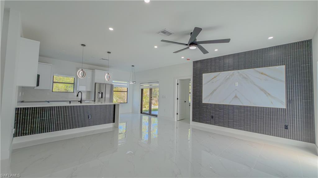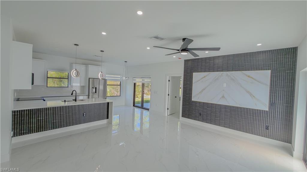 Welcome to your dream home! This beautifully built 3-bedroom, 2-bathroom residence is located on a desirable corner lot in the heart of Lehigh Acres. Designed with modern living in mind, this home features elegant tile flooring throughout, an open-concept modern kitchen with sleek finishes, and stainless steel appliances.