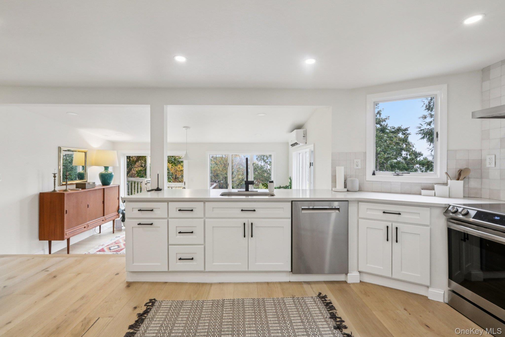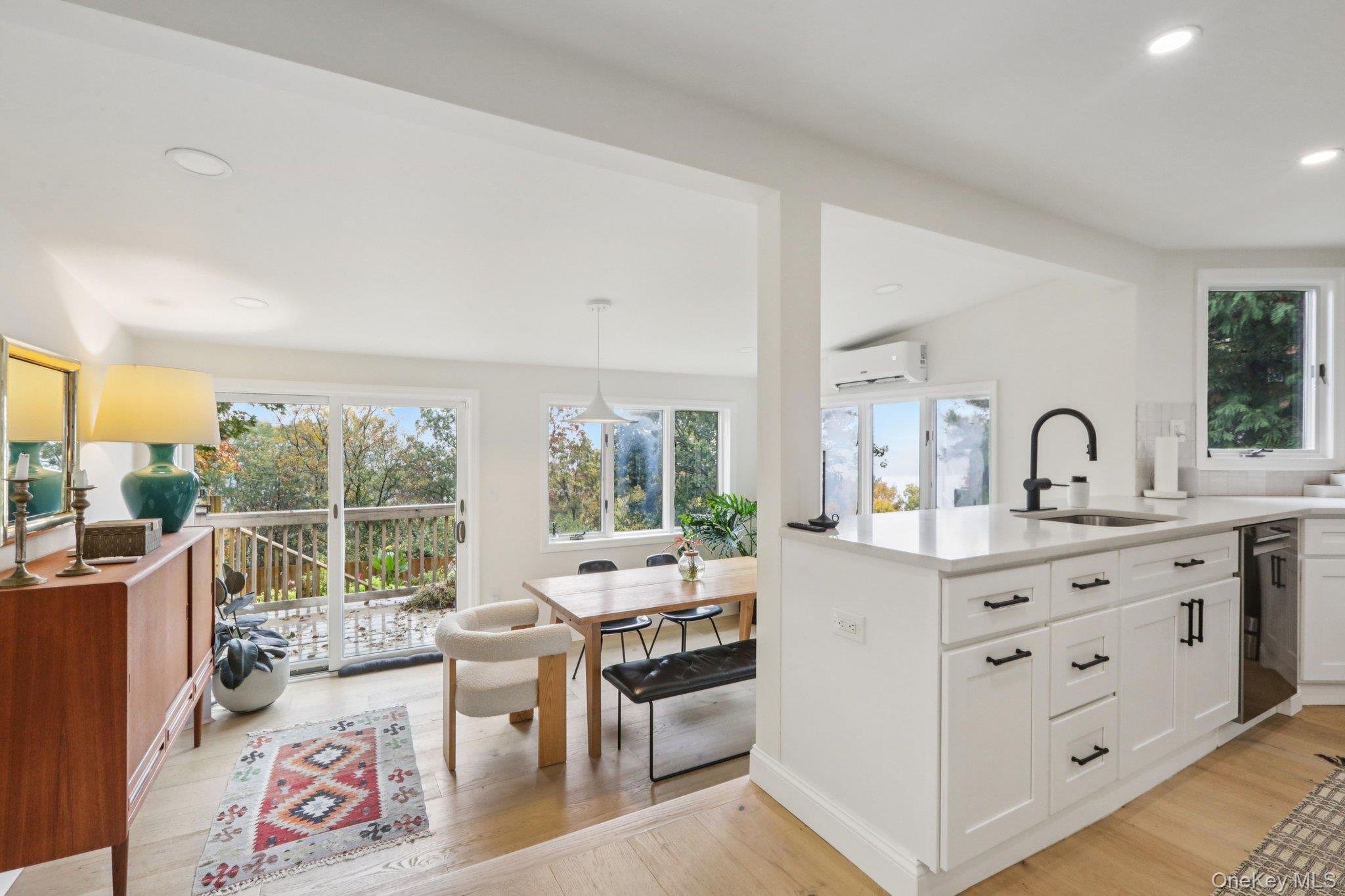 This stunning, fully renovated home blends modern luxury with lakeside tranquility. Inside, discover a designer gourmet kitchen featuring quartz countertops, custom walnut shelving, white shaker cabinets, a SMEG retro refrigerator, sleek new backsplash, stainless steel appliances including a Bosch dishwasher and a convection oven with air fryer and a stylish new oven hood. The open concept layout seamlessly connects the kitchen, dining, and living areas, creating a space ideal for both daily living and entertaining. The first floor offers two spacious bedrooms, a modern tiled bathroom, and a laundry area equipped with a GE Profile washer and dryer. The primary suite features generous closet space and a beautifully updated en-suite bath for added privacy and comfort. Upstairs, the sun filled bonus room offers a versatile space that can serve as a home office, media lounge, or exercise/yoga studio. Step onto the deck and soak in the peaceful landscaped backyard, Zen garden and flower boxes, all set against panoramic lake and mountain vistas. Additional highlights include mid-century light fixtures from Denmark, custom Roman shades, hardwood floors, new storm doors, updated entryway, a 26kW Generac whole home standby generator, new Hyper heat mini split units throughout, RING security system, voice activated smart lighting, newly paved driveway and an attached one car garage. Residents of Indian Park Association enjoy access to the lake with private beach and clubhouse, plus a second beach perfect for launching your kayak or paddleboard. Commute effortlessly to NYC, only an hour away with a bus stop right at the entrance. Experience lake living at its finest—where modern design, serene surroundings, and captivating views come together!