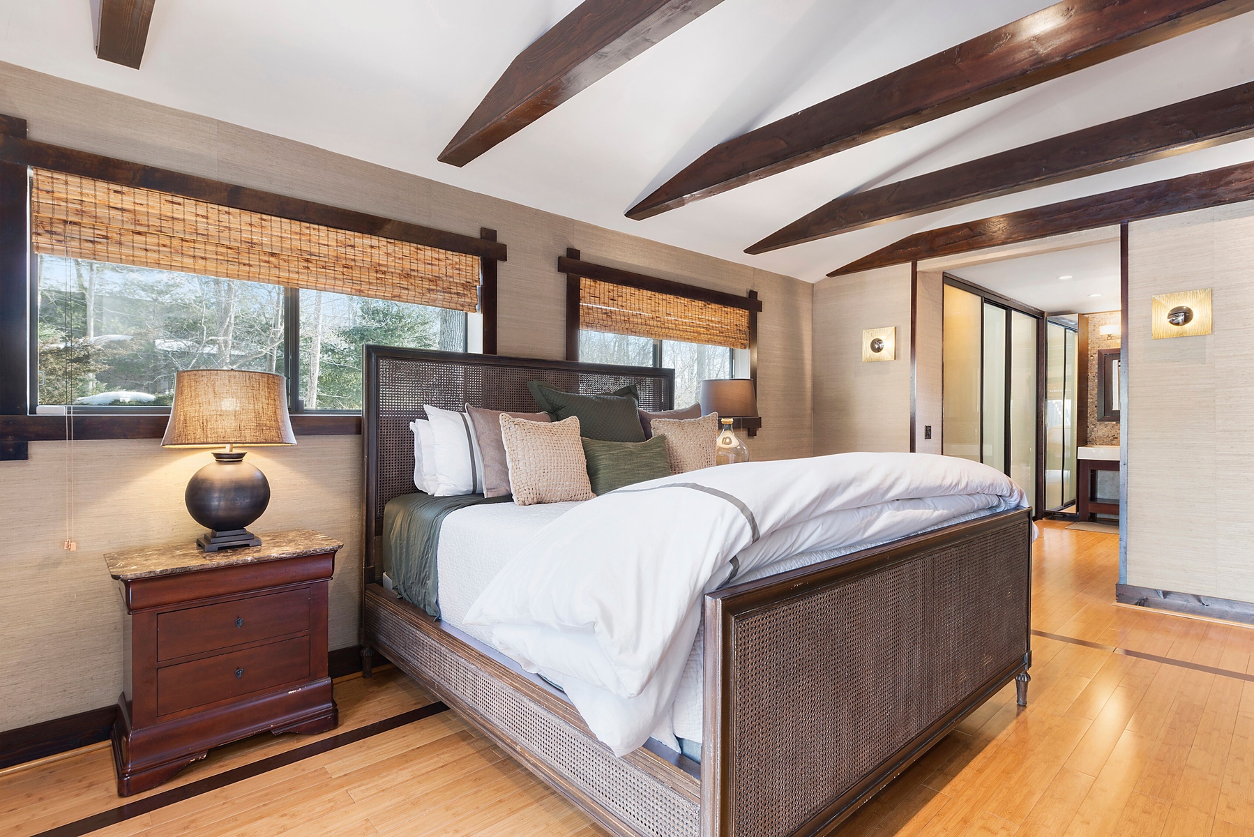 Tucked away at the end of a flag lot off Deerfield Road, this property Sag Harbor enjoys a wonderfully quiet and private setting for summer fun. This 4 bedroom, 3 and 1/2 bath Modern boasts beautiful hardwood floors with open double height ceilings living area and large stone fireplace. All of the bathrooms have been renovated and the kitchen is fully equipped with top quality appliances, granite counter tops and plenty of storage. Enjoy the heated pool surrounded by lush landscaping.