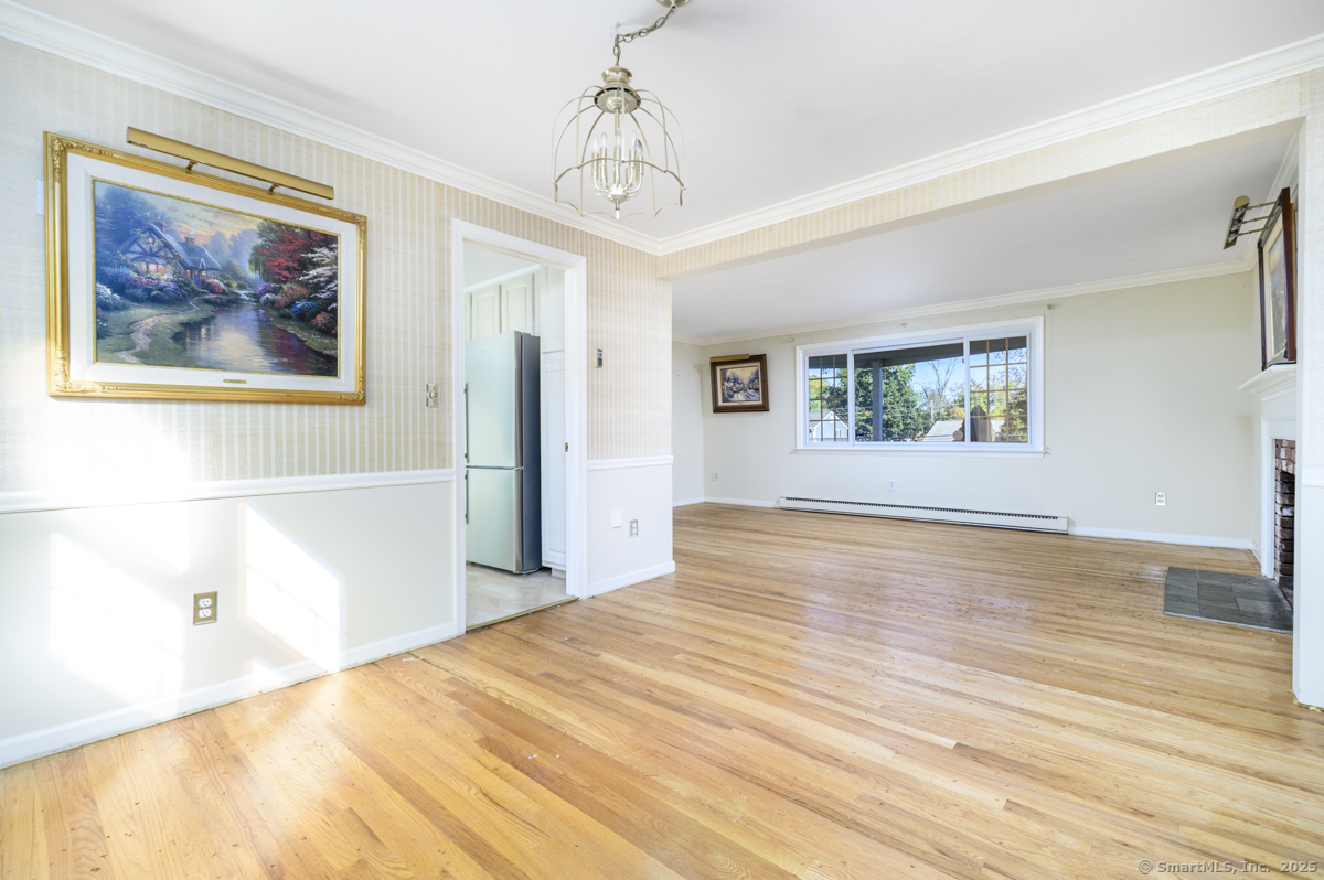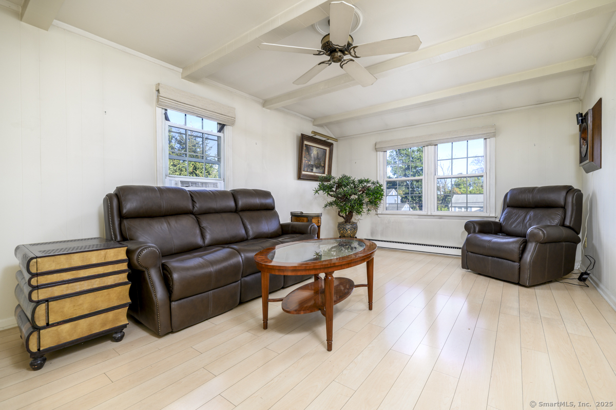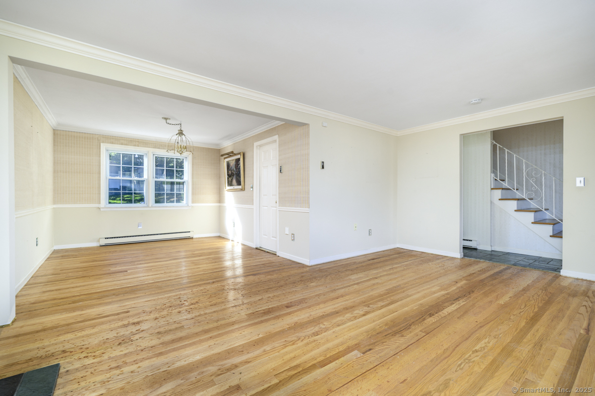 Tucked away on a quiet cul-de-sac, this beautifully maintained home has been lovingly cared for by the same family for many years. Its inviting warmth and ideal location make it a rare find in one of Stamford's most convenient neighborhoods. Just a few blocks from the popular Newfield Green Shopping Center, with easy access to bus lines, Sterling Farms Golf Course, the JCC, Italian Center, and the Springdale Train Station. Downtown Stamford, the main train station, and I-95 are all just minutes away. Inside, sunlight highlights gleaming hardwood floors throughout (even under the carpets). The spacious living and dining room combination features a charming wood-burning fireplace - perfect for relaxing or entertaining. The updated kitchen includes an adjacent laundry room and an oversized pantry offering exceptional storage. The primary bedroom suite features a full bath with a stall shower. A beautiful backyard with a private patio provides the perfect setting for outdoor dining and gatherings. The large unfinished basement, with high ceilings, offers tremendous potential to create a playroom, gym, home office, workshop, or creative studio. A wonderful opportunity to own a truly well-loved home in a desirable, convenient Stamford location.