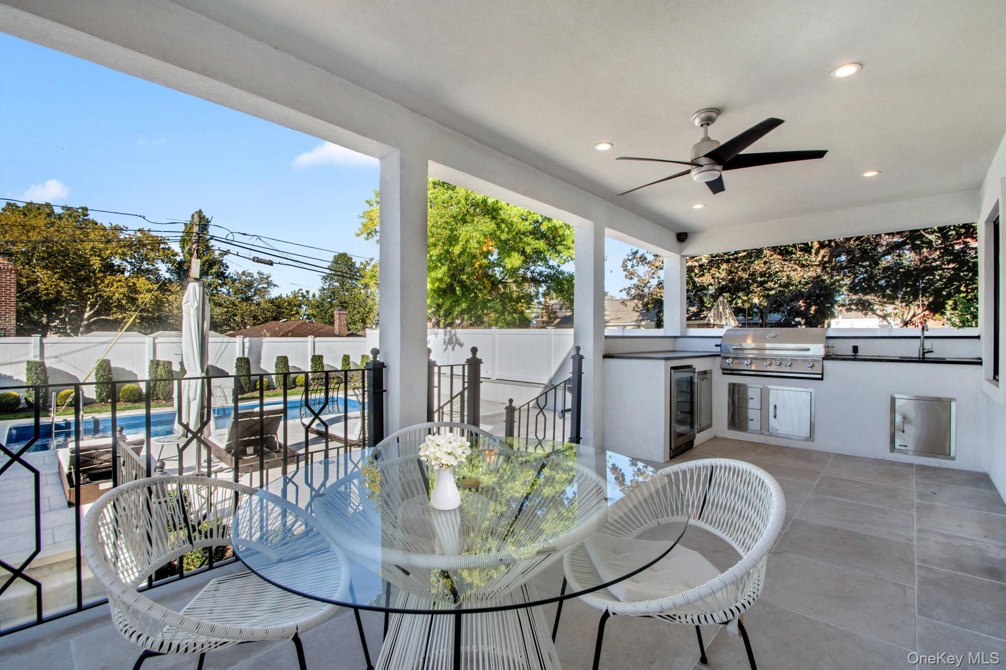MODERN EUROPEAN ELEGANCE MEETS TIMELESS DESIGN This stunning residence perfectly blends transitional style with refined European finishes. Featuring soaring ceilings and 4 spacious bedrooms, the open and airy layout is both elegant and inviting. The gourmet open kitchen and luxurious living spaces flow seamlessly to a private yard oasis, complete with an in ground pool, upper patio and outdoor kitchen. Ideally situated in a highly sought-after location within Whitestone. This residence offers exceptional comfort, sophistication and privacy. The perfect retreat for modern living.