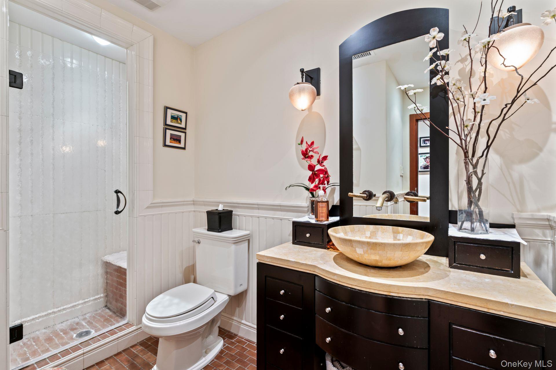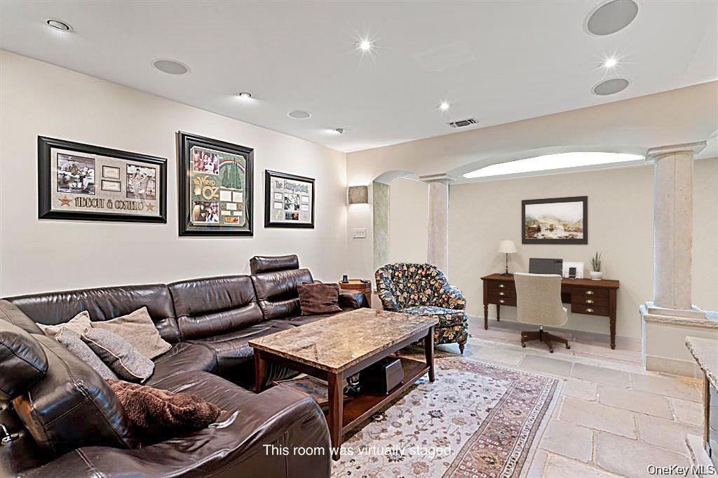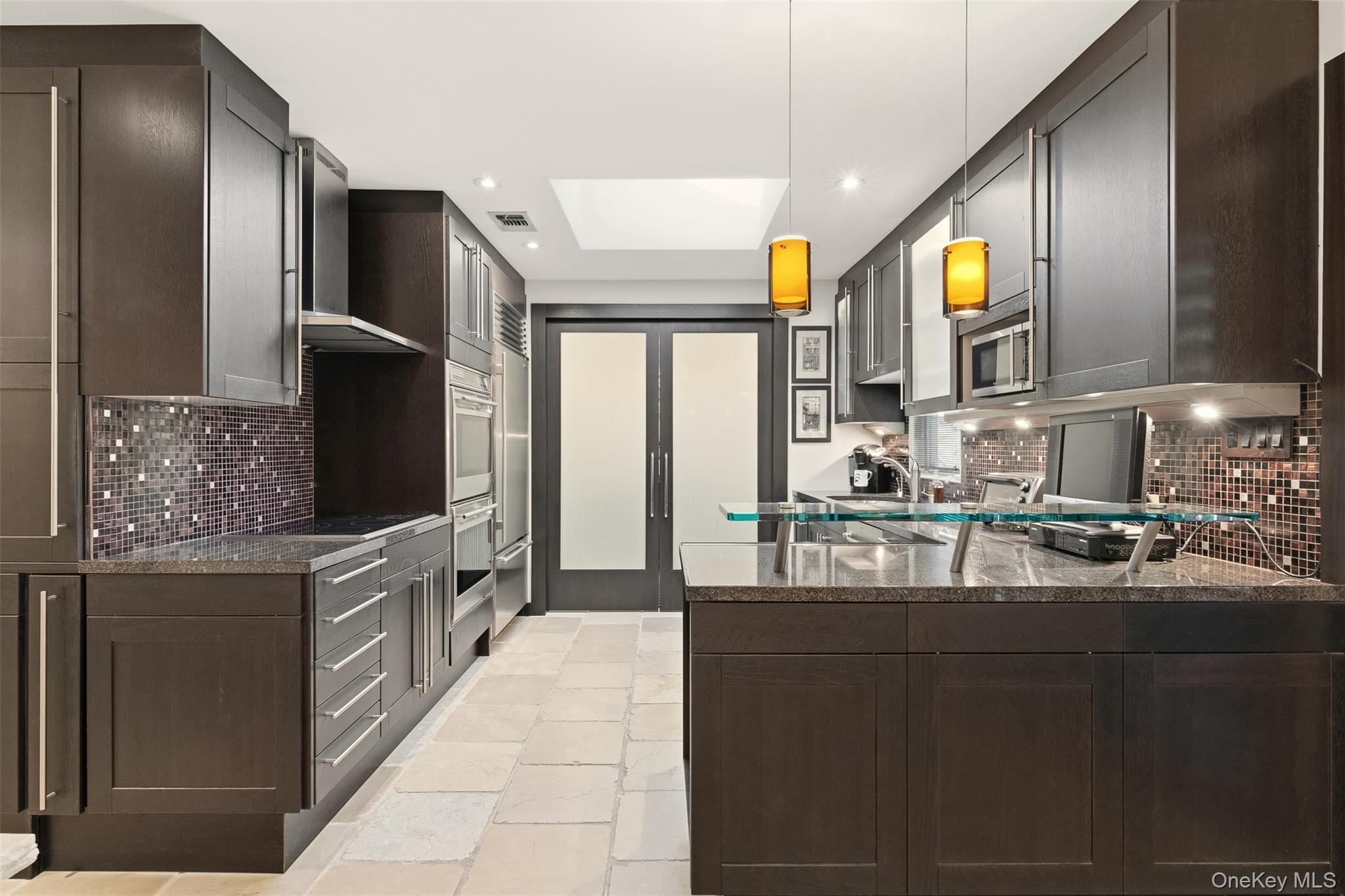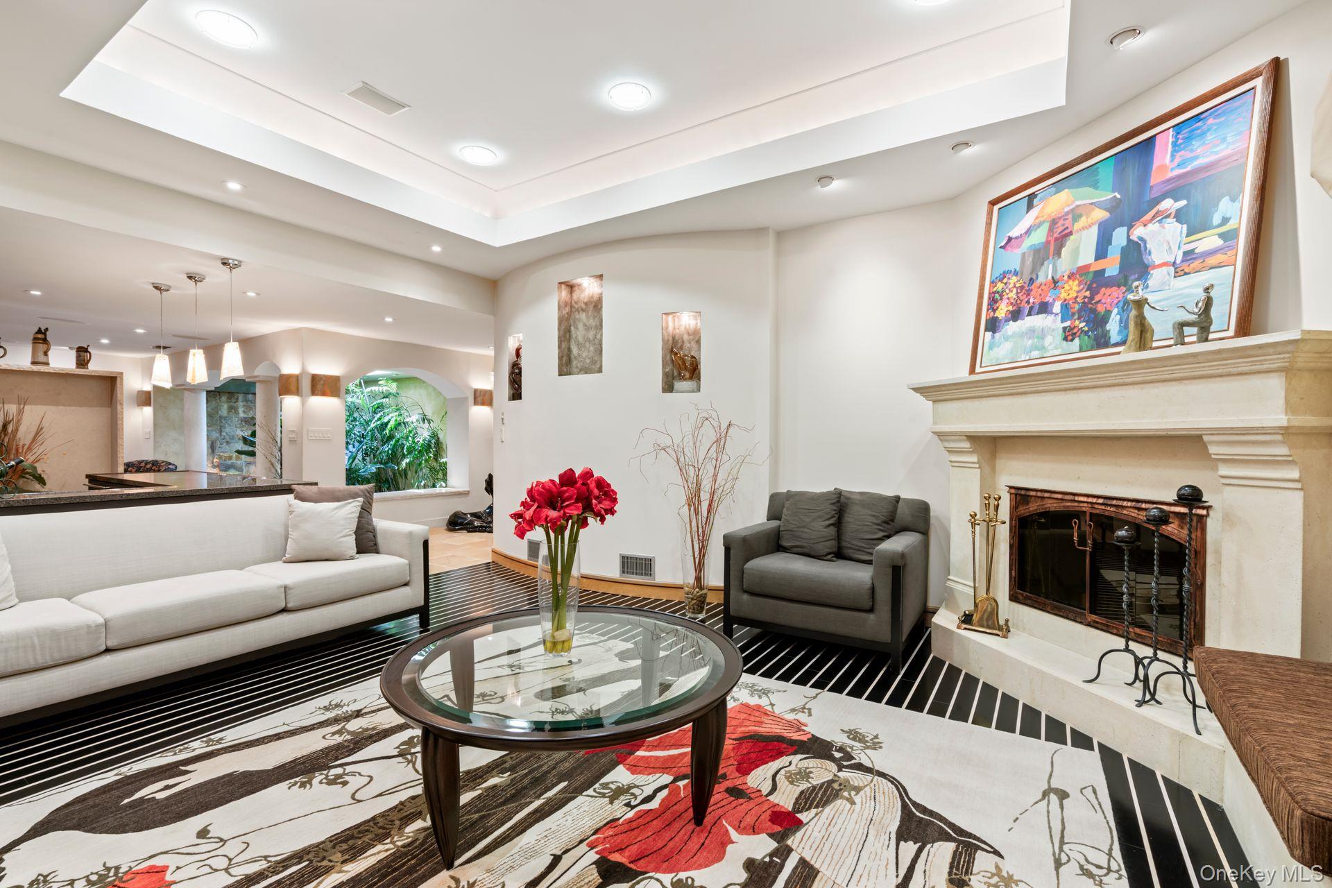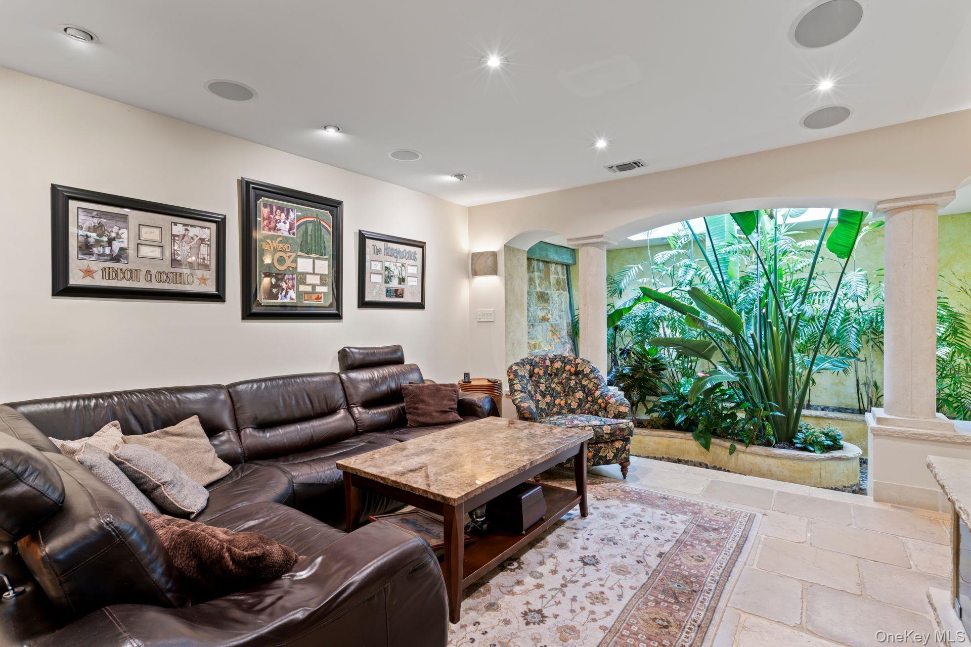 Surrounded by expansive greenery and a wrap around Trex deck, 234 Hamlet Drive is an end unit Ranch with three bedrooms and two and a half baths. Interior is sleek and sophisticated: open floor plan offers spacious rooms; superb materials and workmanship; an eclectic blend of stone and hardwoods; European cabinetry and built-ins throughout! A plant filled indoor atrium features it's own sprinkler and a waterfall! There is a wet bar in the foyer for hosting. Kitchen, with its high-end appliances, connects the formal dinning room to the less formal eating and living areas, providing efficiencies and additional ease of entertaining or quiet enjoyment! Primary bedroom suite offers many built-ins and two spacious walk in closets. A large soaking tub and separate shower are features of the light infused bathroom. Of the two additional bedrooms, one is used as an office; the other, has a "Murphy" bed. The gated community of The Hamlet in Jericho and this California ranch in particular, have so much to offer! Not to be missed.
