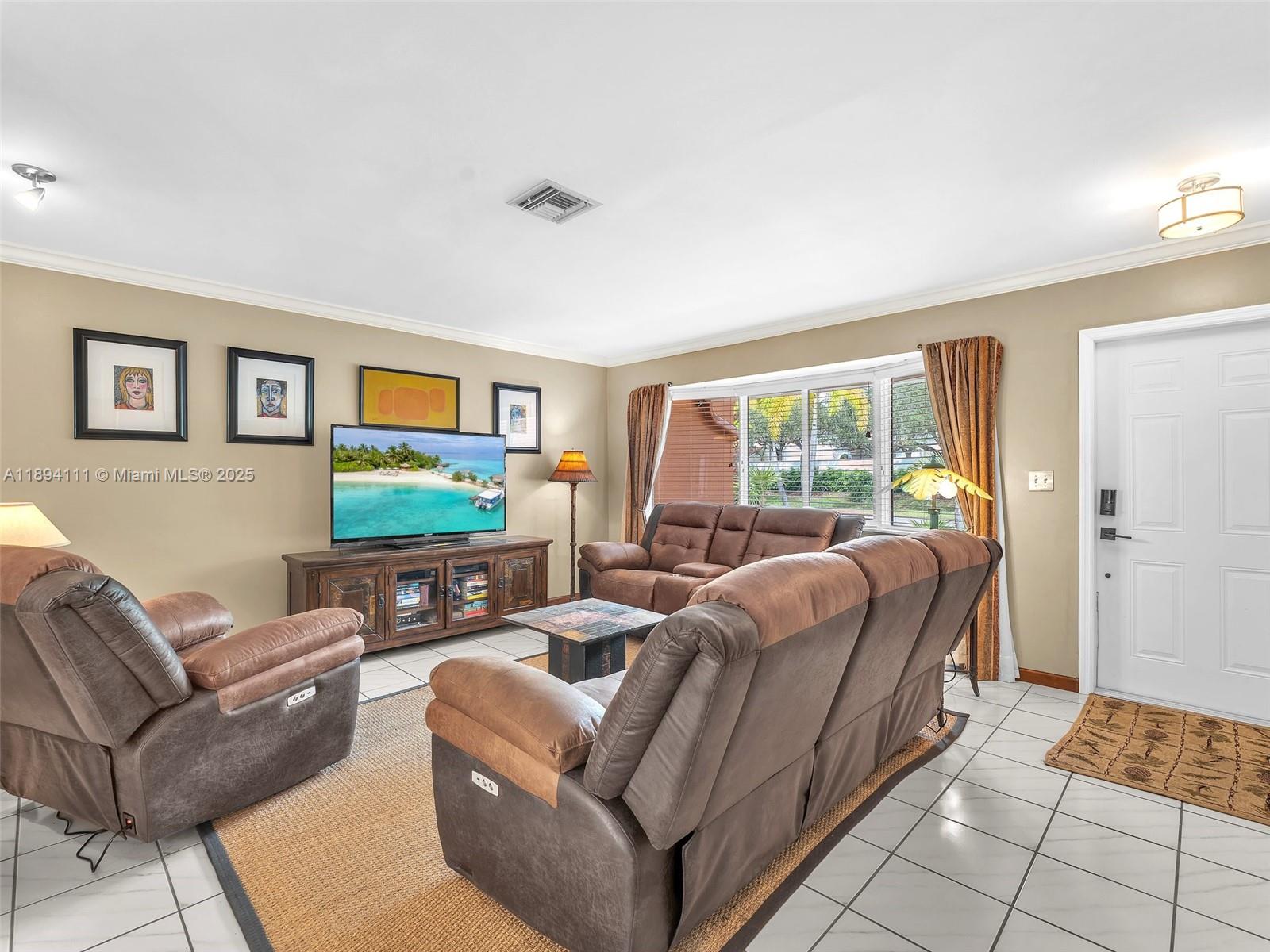 Spacious 3-bedroom, 2-bath, 1-car garage home with a spectacular back yard complete with a saltwater pool, built in jacuzzi, and waterfall. This home features an open kitchen concept, formal dining, living room, and a Florida room that flows into an oversized covered patio, perfect for entertaining. Inside, the primary suite includes an updated marble bathroom with a rain shower and glass enclosure, while the second bath features elegant mosaic marble tile. Perfect for entertaining, your private outdoor oasis features a fully fenced yard, tropical landscaping, an outdoor shower and beautiful outdoor lighting. Additional highlights include impact windows and doors, a covered front porch, elegant crown molding, and a transferable home warranty—making this the ultimate place to call home.