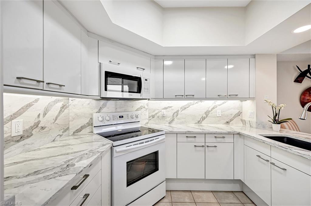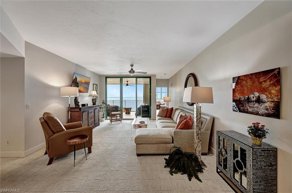 Welcome to the stunning Monterrey at Cape Marco! This luxury building is situated on the southern end of Marco Island overlooking the Gulf of Mexico and the 10, 000 Islands. Watch manatee and dolphin swim by glorious sunsets from your front and back balconies. Enjoy gulf breezes on the main balcony, large enough to enjoy an outdoor living room and or dining space. Cape Marco is a very secure community with main gate manned 24 hours, secured building and parking area. Enter this condo via a semiprivate elevator servicing only 2 units per floor. The double door entry opens to a nice sized great room with incredible views. The split bedroom floor plan has den and guest room to the back of the condo and primary suite with balcony access to the front. Wake up to glorious views and morning sun. The primary bath has a large soaker tub and a walk-in shower, double vanity and a walk-in closet. The kitchen with white modern cabinets and granite counters has a coffee bar breakfast room area. Many updated items including AC 2020, Hot Water Heater 2024, Refrigerator 2018, Dishwasher 2023, Stove/Oven 2020, Disposal 2024, Washer/Dryer 2022. In addition to shared storage on the unit floor, there is a large private storage area in the garage. The building has an outstanding clubhouse room with full kitchen, bar, large screen TVs, game/card area and many sitting areas all with spectacular gulf views. Cape Marco has one of the most popular tennis groups on the island. Enjoy 6 Har Tur tennis courts, the newly renovated clubhouse and veranda area and all that the tropical Cape Marco grounds have to offer. This condo with its unobstructed view and ample 1800 sq. ft plus is one of the best buys on Marco at this time.