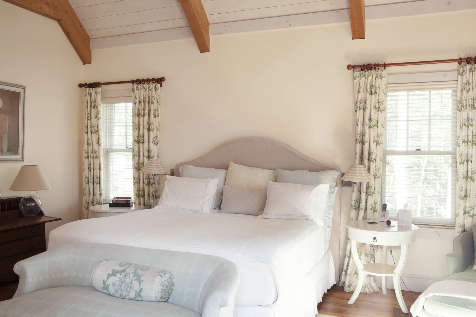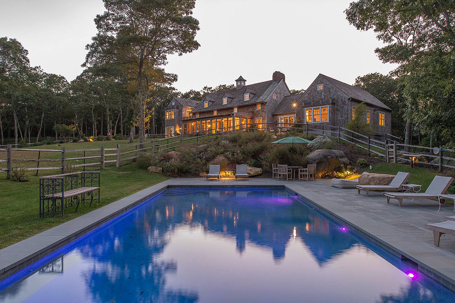 This beautiful 5 bedroom, 6. 5 bath, 5, 000 sf country home sits on seven private acres. A grand double height, barn style living and dining area opens into a well equipped chef's kitchen complete with large island, Wolf stove and double oven, and Sub-Zero appliances. The butler's pantry holds an additional refrigerator and dishwasher for entertaining. The wood paneled library offers a separate place to relax and enjoy the expansive views. A large screened-in porch provides sweeping views of the natural landscape and offers separate areas for lounging and dining. A pathway leads to the large, heated, gunite pool with bluestone patio and charming pool house. The new built in fire pit provides another area for family and friends to gather and enjoy summer evenings. The vaulted primary suite contains his/her walk-in closets, two full bathrooms, and its own patio. Three large bedrooms in the guest wing have en suite bathrooms, sitting areas, and picturesque views. The finished lower level has a spacious bedroom with bath, quiet home office area, and bonus room. The lower level is perfect for young adults or a live-in nanny and has its own private entrance and a patio with hot tub. Other features include wide-plank oak floors throughout, five-zone Nest system, heated bathroom floors, two laundry rooms, gas BBQ, and gigabit internet with strong wifi signal in every corner of the house. This inviting home is a perfect oasis immersed in a quiet, natural environment.