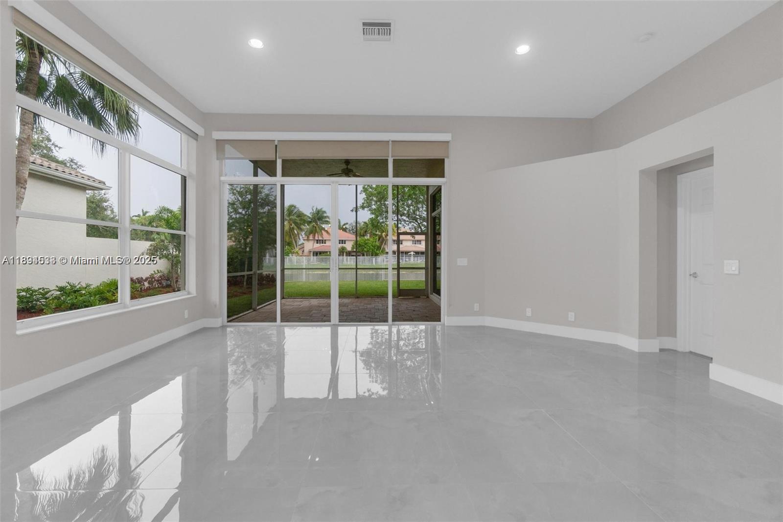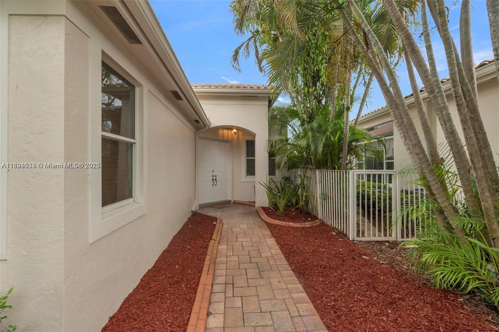 3 bedrooms 3 full bathrooms one-story waterfront home in the gated community at Weston Hills. Spacious open floor plan with soaring ceilings and serene lake views. Bright and airy living and dining areas. Kitchen features wood cabinets, granite countertops, stainless steel appliances and a breakfast nook. Wood and tile flooring in common areas. Primary suite offers 2 walk-in closets and large bathroom with tub, shower and dual sinks. One guest bedroom is en-suite with private bathroom. Relax and enjoy breathtaking sunsets from the oversized screened patio overlooking the large fenced backyard, with room for a pool, ideal for entertaining! Large laundry room with sink and 2-car garage. Enjoy 5-star resort-style amenities. Close to I-75, dining and parks. A+ schools.