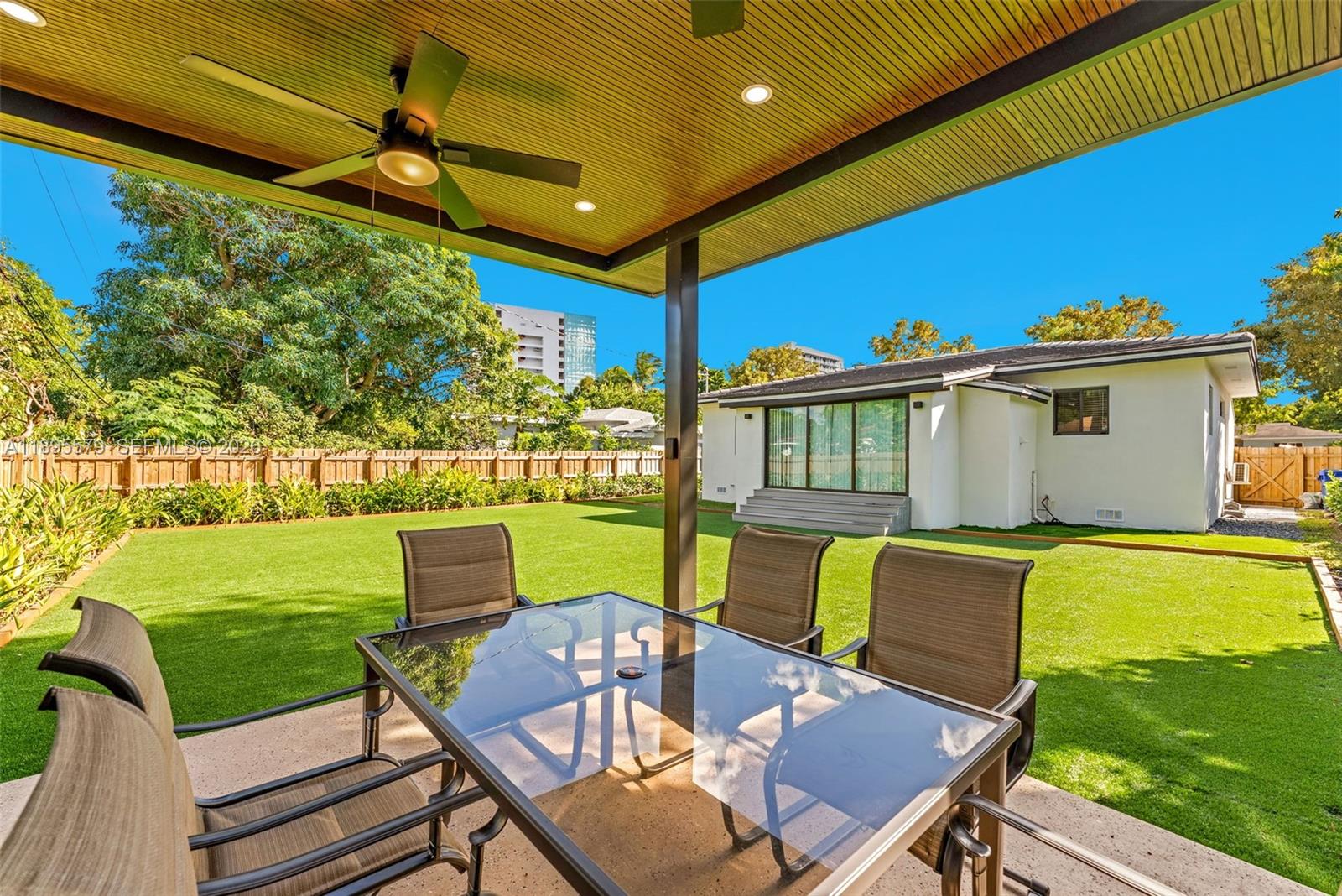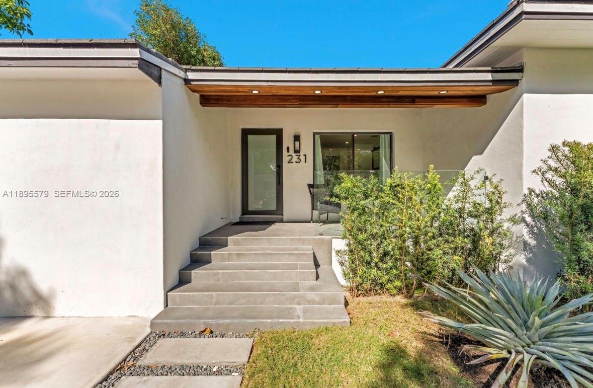 Located just two blocks from the Design District, this beautifully remodeled home sits on a spacious 7, 475 sq. ft. lot. The exterior features lush Bermuda grass and podocarpus hedges for complete privacy. A modern driveway includes an electric vehicle charging station for added convenience.