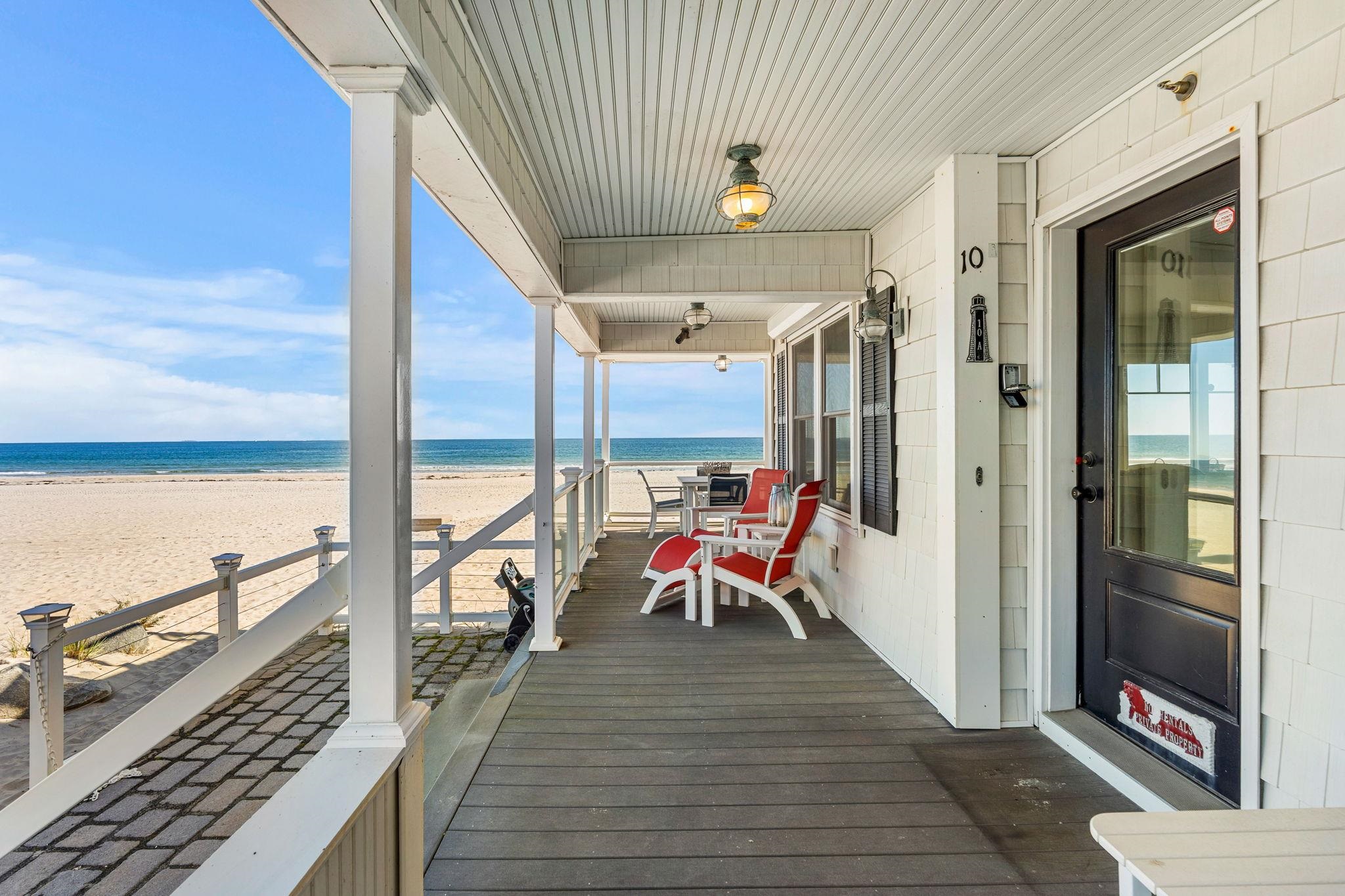 Rarely available, this custom-built three-bedroom condominium sits directly on the sand and is not located in a flood zone. With miles of pristine, sandy white beach just outside your door, this property offers the ultimate in coastal living. Inside, you’ll find upgrades throughout, including a designer kitchen with stainless steel appliances, hardwood flooring, and custom-tiled baths. The spacious living room opens to sweeping views of the Isle of Shoals, while an expansive wrap-around deck with direct steps to the sand provides the perfect space for relaxing or entertaining. Offering both luxury and location, this exceptional home is truly a dream come true for anyone seeking a beachfront lifestyle.