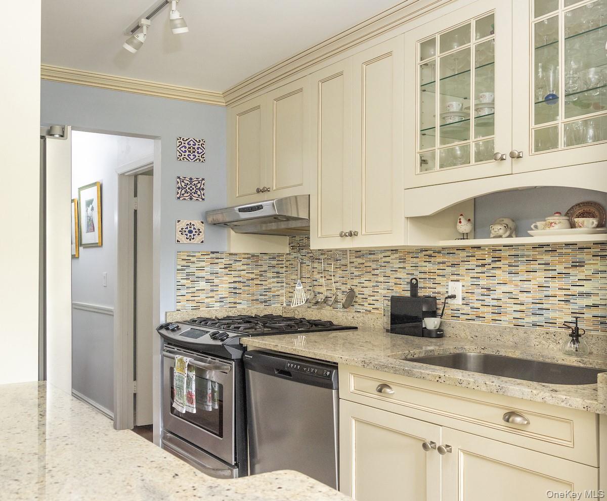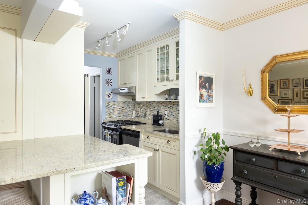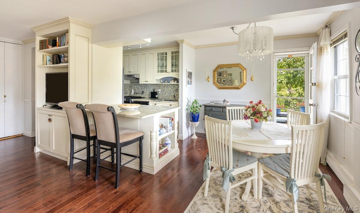Enjoy a European lifestyle in this bright and spacious top-floor corner residence. Perfectly situated within walking distance to Main Street shopping, schools, parks, and public transportation, this pristine home blends modern convenience with Parisian-inspired charm. The recent open-concept renovations feature flush closet doors, custom built-in cabinetry, a wide granite island, and hardwood floors throughout. A stunning east-facing picture window floods the living area with morning light and overlooks a bouquet of cherry blossoms each spring. The main living space extends to a private balcony framed by wrought-iron railings and Mediterranean-style views. The recent kitchen renovation offers a gas range, stainless steel appliances, and an oversized farmhouse sink. A bonus pantry closet with outlets has been added for more valuable kitchen storage. Both large bedrooms include walk-in closets, built-in AC units, double windows, and wood flooring, while the primary suite boasts a renovated en suite bath. Thoughtful details throughout the home include new radiator covers, generous storage, and a large-capacity refrigerator. The building offers a renovated lobby with touch-screen entry system, elevator, same-floor laundry, landscaped garden with barbecue area, and off-street parking. Set in the heart of Hastings-on-Hudson with top-rated schools and a vibrant downtown, this top floor residence, 3A, combines elegance, convenience, and an ideal Rivertowns lifestyle.
