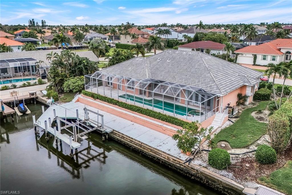 An exceptional waterfront opportunity on Marco Island’s desirable south end! This property at 742 Orchid Court offers quick, direct Gulf access — no bridges — and features a private U-shaped dock with a 12, 000 lb. boat lift, making it a true boater’s paradise. The existing home features a spacious great room layout with vaulted ceilings, hardwood flooring, and a Corian kitchen with two pantries and a bright morning room overlooking the pool and canal. There is a generous primary suite, plus a den/study with custom built-in shelving offering endless possibilities for transformation. Outside, enjoy the screen-enclosed lap pool and spa, surrounded by lush tropical landscaping and serene water views. This property presents an ideal renovation or rebuild opportunity in a prime island location, where properties with direct Gulf access and existing dockage are becoming increasingly rare. Whether you envision a complete remodel or a brand-new custom home, this address provides the foundation for your perfect Marco Island waterfront retreat.