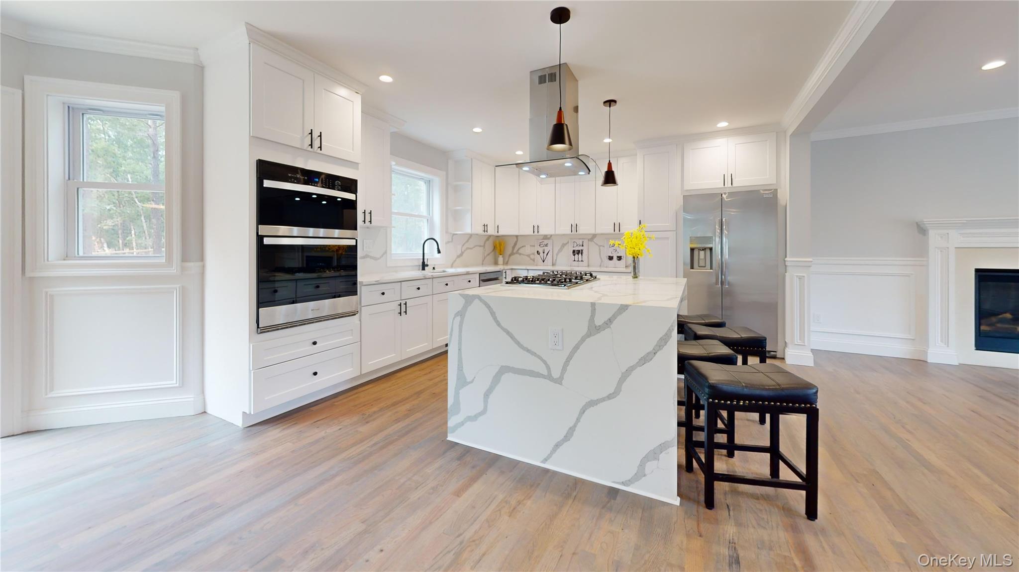 New Construction - Stunning and spectacular modern and traditional center hall colonial. Very few new homes on the market as nice as this one. features are gourmet kitchen with center Island and cooktop, including wall oven and convection microwave. Wine and beverage cooler area, living room with centerpiece fireplace and custom molding throughout the first floor. Formal dining room, den and full bathroom . second floor features primary suite with walk-in closet and primary bathroom +3 bedrooms, full bathroom and laundry. full size 8 foot basement with walkout entrance and egress , two car garage nestled on just under an acre