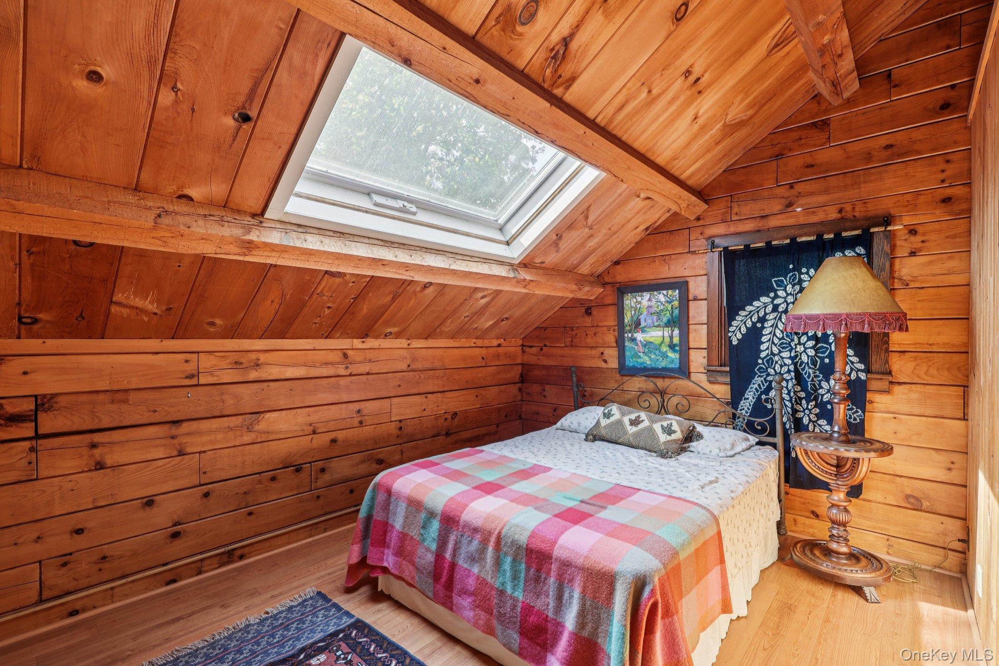 Owned by a respected local artist "The Artist’s Cabin" is a reflection of creativity and craftsmanship at every turn. Just 50 miles from Manhattan. This extraordinary country escape captures the essence of rustic luxury. Set on ten acres of lakefront beauty, the property features a handcrafted log cabin that blends natural textures with refined design. Inside, every space reflects thoughtful artistry — from the stone fireplace that anchors the great room to the primary bedroom’s hand-finished metal ceiling. Throughout the cabin, are original works of art by renowned artisans Barney Bellinger and Dan Mack, both celebrated for blending natures inspiration with timeless craftsmanship. Just steps from the main cabin, the converted barn is nothing short of extraordinary — a showpiece of artisanal craftsmanship and design. Constructed from reclaimed wood sourced from one of Warwick’s historic barns, it stands as a testament to creativity and preservation. Soaring exposed beams, rich natural textures, and fine detailing come together to create a space that feels both rustic and sophisticated. A custom-built bar, full bath, and artist loft with a balcony overlooking the lake make it a perfect space for entertaining, relaxing, or simply taking in the beauty of its surroundings. The property also features a four-car heated garage with a large loft, perfect for an office or studio, while a smaller outbuilding with water and electricity makes an excellent tack room or workshop. Copper roofing crowns the main structures, adding an enduring touch of luxury and durability. The grounds are serene and expansive, with ample space for horses and the potential for subdivision. Whether envisioned as a private lakeside escape or a high-end Airbnb retreat, the possibilities are endless. Surrounded by miles of preserved farm land yet just a five-minute drive to downtown Warwick — known for its boutique shops, farm-to-table restaurants, wineries, apple orchards, golf course and seasonal festivals — and less than one mile from Mount Peter Ski Area, with Vernon Valley’s premier ski destinations, including Mountain Creek and Hidden Valley, just a short drive away, this property offers the best of both worlds: rural tranquility and modern accessibility. Truly one of Warwick’s most captivating and artful retreats.