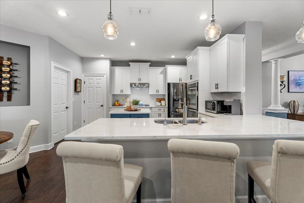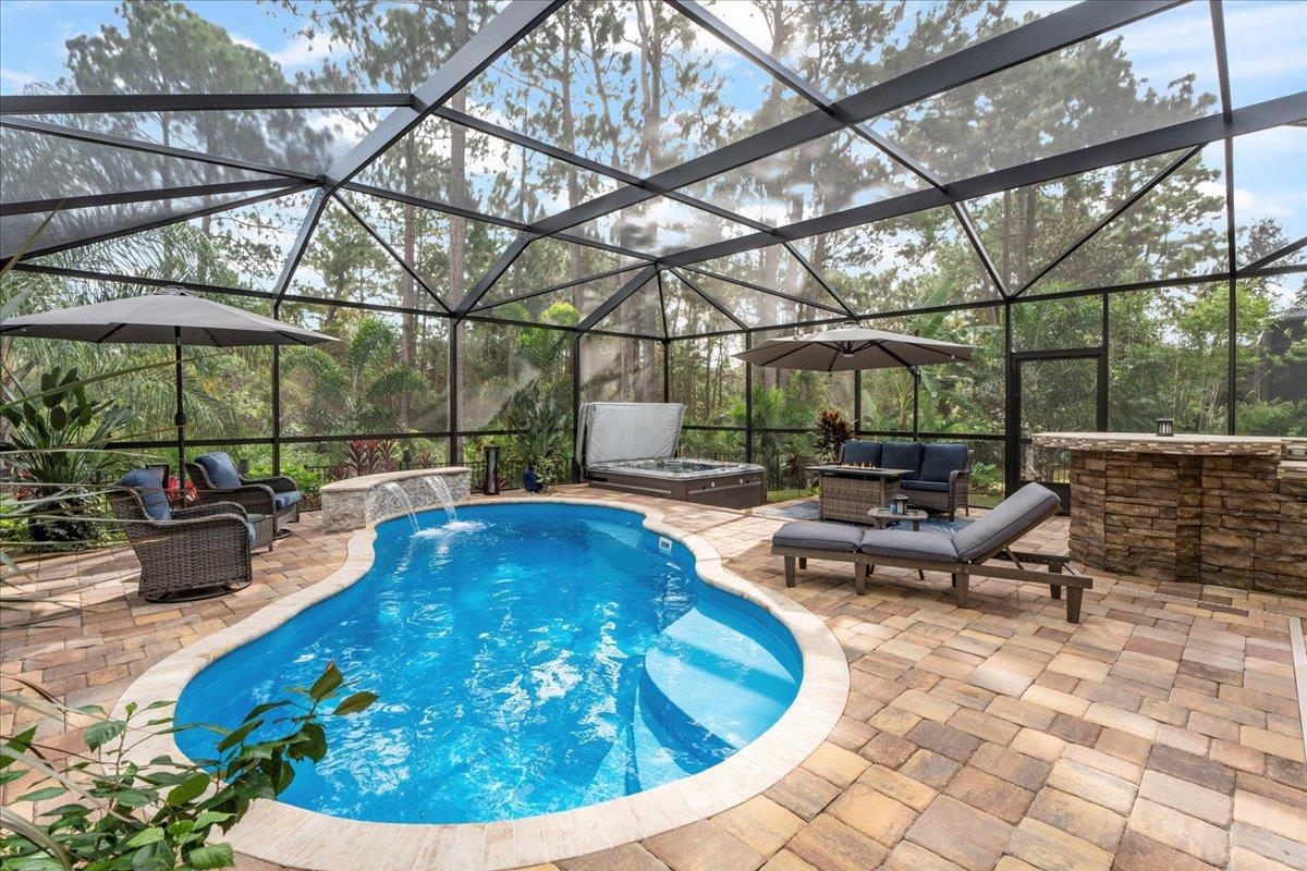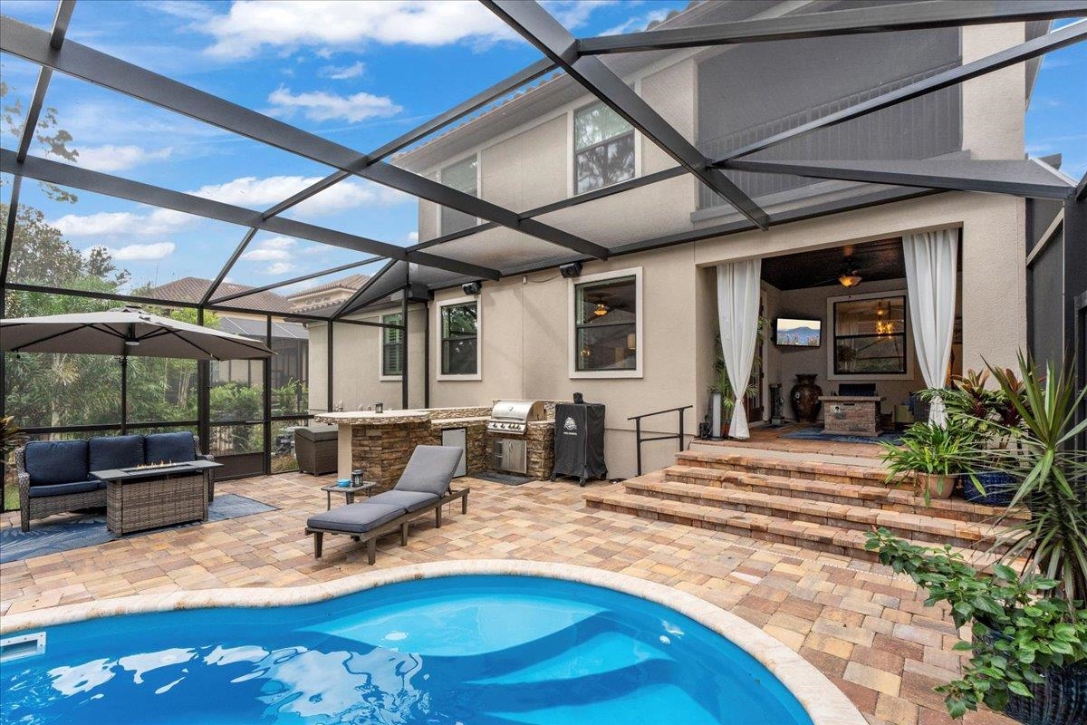 This isn't just a house. It's a way of life. Tucked inside one of the most loved communities in Palencia, this beautiful five bedroom, four and a half bath Mediterranean-style home at 152 Spanish Marsh Drive blends timeless elegance with warm, neighborly charm. It's the kind of place where people wave when they pass, neighbors know each other's names, and evening walks are something to look forward to. Nearly 4, 000 square feet of thoughtful design give you both sophistication and everyday comfort. The main living area is open and airy with the kitchen, dining, and living spaces flowing together. The first-floor primary suite is a peaceful retreat, while upstairs, four bedrooms with their own baths give everyone space to spread out. Step outside to a backyard oasis with a heated saltwater pool, spa, summer kitchen, and screened lanai overlooking a pond and preserve.