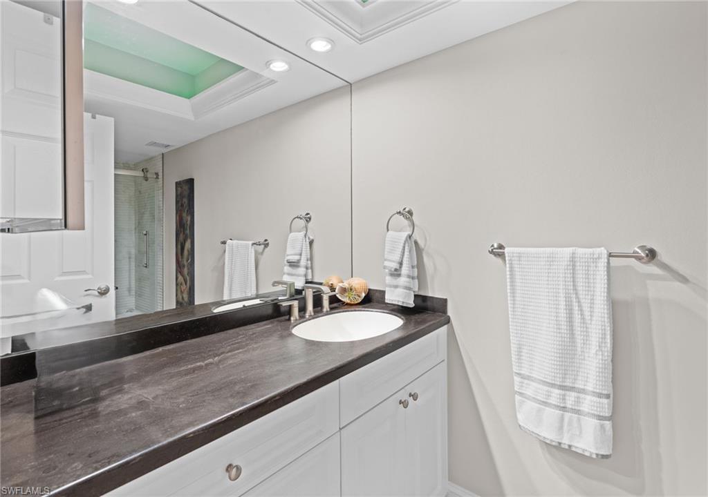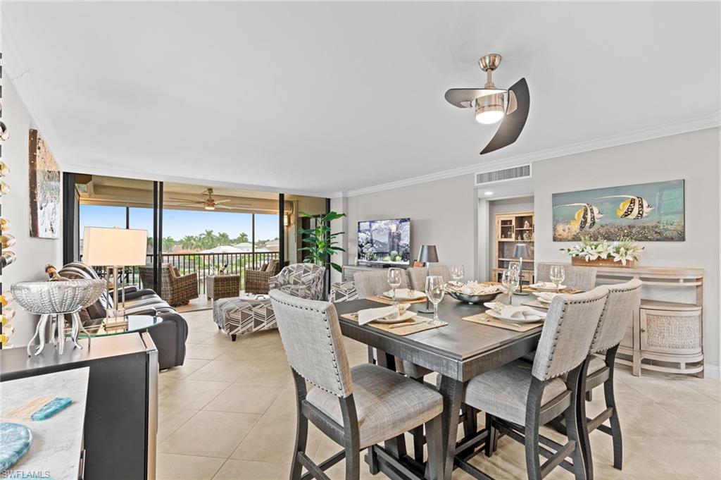 Pets allowed - (1) 40lbs. WATERFRONT TOP-FLOOR END UNIT w/ DEEDED DOCK & GULF ACCESS - SHORT DISTANCE TO MARCO ISLAND BEACHES! Don't miss this beautifully updated 2 bed, 2 bath top-floor end-unit condo offering stunning wide-water views, quick direct boating access to the Gulf, and one of the largest deeded boat docks that can accommodate up to 35' boat with 14, 000 lb lift and dock box—ideal for boaters and water lovers alike! Located on the highly desirable south end of Marco Island, this light-filled unit features an open floor plan with tile flooring throughout, custom crown molding, impact windows, and electric shutters. The spacious living area opens to a private screened lanai overlooking waterfront and pool—perfect for relaxing after a day on the water or beach. The updated contemporary kitchen boasts granite countertops, stainless steel appliances, marble backsplash, abundant cabinet space, and a convenient breakfast bar. The large primary suite offers multiple windows with water views, and an ensuite bath with granite vanity and a glass walk-in shower. Enjoy peace of mind with new A/C and water heater (2020), plus a full remodel in 2016 and being sold furnished turnkey. The well-managed community features tropical landscaping, paver walkways, new seawalls, a new roof (2022), extra storage, elevators, and an updated social room. Conveniently located close to Marco Island's world-famous white sand beaches, dining, and entertainment. Whether you're looking for a vacation home, seasonal rental, or full-time island lifestyle, this move-in-ready condo is a true gem for boaters, beachgoers, and sunseekers.