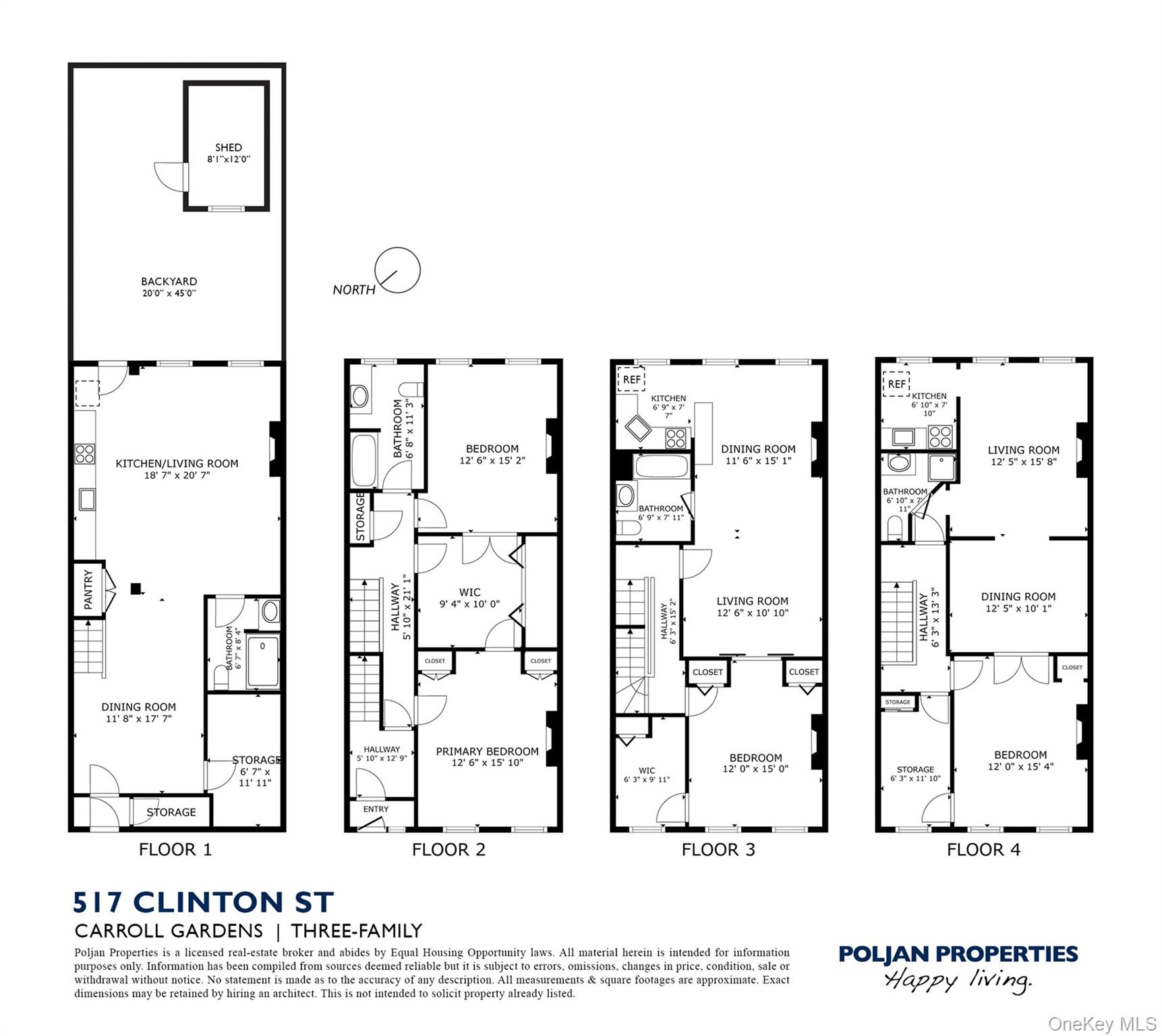Please note Open House is by appt only. Timeless and versatile, this four-story, 3-family townhouse offers 4 bedrooms, 4 bathrooms, and approximately 3, 600 square feet of interior space on a deep 20' × 90' lot — the longest on the block. Beautifully maintained and rich with original detail, the home features six decorative marble fireplaces, exposed brick walls, tin ceilings, hardwood floors, and classic moldings throughout. The owner’s duplex spans the garden and parlor levels, offering a spacious, open-plan layout that balances original character with everyday functionality. The garden level includes a renovated kitchen with stainless-steel appliances, tiled backsplash, and abundant cabinetry, seamlessly flowing into a large living and dining area with exposed brick and a decorative fireplace. This level also features a newly renovated full bath and a dedicated laundry room with new washer/dryer and updated mechanicals. Upstairs, three well-proportioned bedrooms and another full bath provide comfort and flexibility for everyday use — whether as sleeping quarters, a home office, or guest space. The approximately 45-foot long backyard is a standout — private, sunny, and fully fenced, with greenery and a large wooden shed perfect for storage, gardening, or creative use. The upper two floors each host a bright, one-bedroom floor-through apartment with open living/dining layouts, separate kitchens, and charming period details — ideal for generating rental income, accommodating guests, or a future single-family conversion. The third-floor apartment is currently occupied, with the tenant’s lease in place through February 2026. Situated on a picturesque, tree-lined block in the heart of Carroll Gardens, 517 Clinton Street is moments from Court and Smith Streets’ cafés, boutiques, and restaurants, Carroll Park, Brooklyn Bridge Park, and the F/G subway lines. A rare opportunity to own a quintessential Brooklyn townhouse that blends character, flexibility, and neighborhood appeal in one of the borough’s most desirable locations.