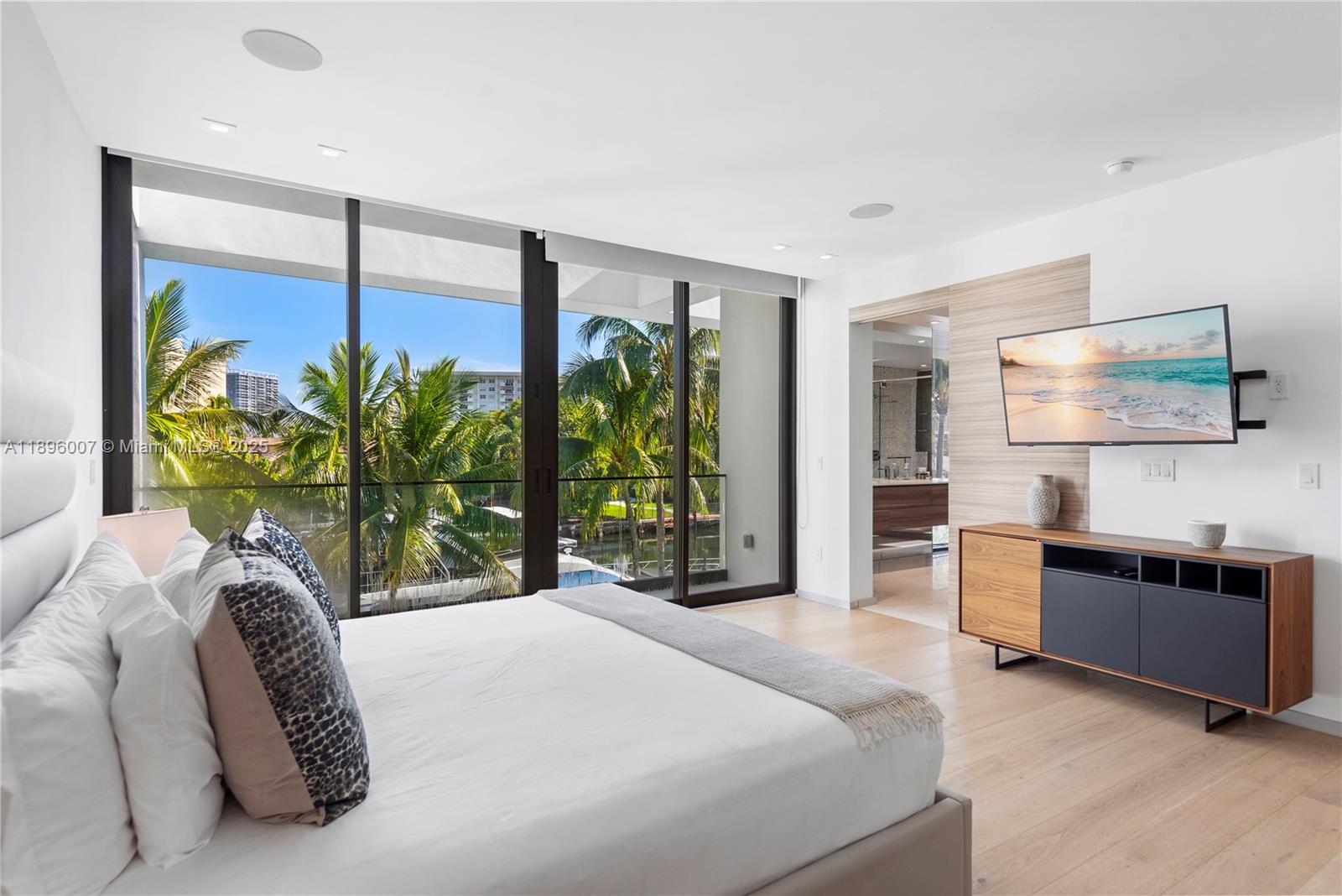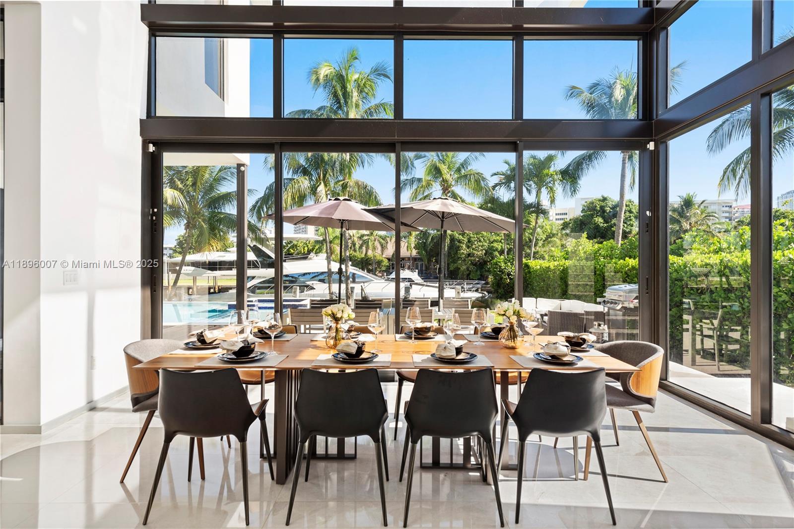 Welcome to Sunset Mansion, a breathtaking 2-story ultra-modern marvel nestled in the prestigious guard-gated Golden Isles community. This secure sanctuary boasts 6 bedrooms and 6 bathrooms, adorned with soaring 24-foot ceilings throughout the living areas, offering an unparalleled sense of space and grandeur. Elevate your lifestyle with the convenience of an elevator and indulge in culinary delights with a state-of-the-art summer kitchen. With 85 feet of yacht-friendly water-frontage, effortlessly access the bay and ocean, making every sunset an unforgettable experience. Embrace luxury living at its finest in this waterfront masterpiece. Call listing agent for exclusive showings.