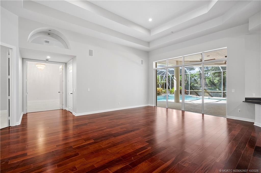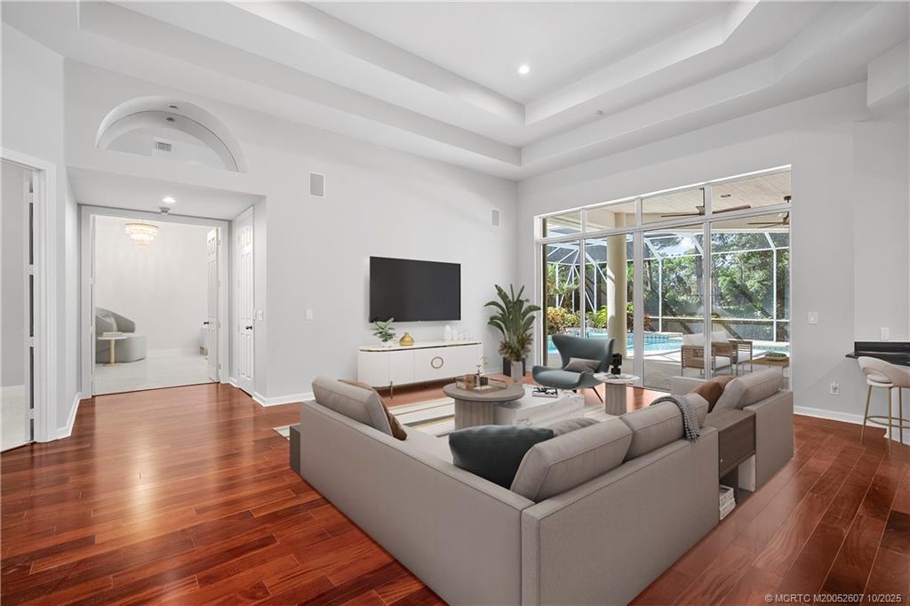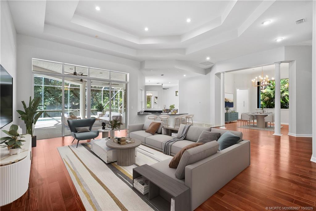 Exceptional custom home, perfectly set within Stuart's Willoughby Golf Club. Spanning over 3, 900 sq ft of air-conditioned living, this estate is an ideal setting for both intimate family life and entertaining large gatherings. The open, bright interior, defined by soaring volume ceilings, leads to a spacious layout featuring 3 bedrooms and a dedicated den. Culinary enthusiasts will love the kitchen, which effortlessly services the main living and dining areas. Elegant wood floors flow throughout the main living spaces. The opulent master bath is brand new, a spa-like retreat with a large walk-in shower and a chic free-standing soaking tub. Outside, a private pool and an oversized 3-car garage complete the property. Willoughby Golf Club provides a premier lifestyle with first-class amenities: championship golf course, tennis, pickleball, a fitness center, and vibrant social events and dining. Buyer Initial capital contribution of $50, 000 due at closing. Golf memberships available.