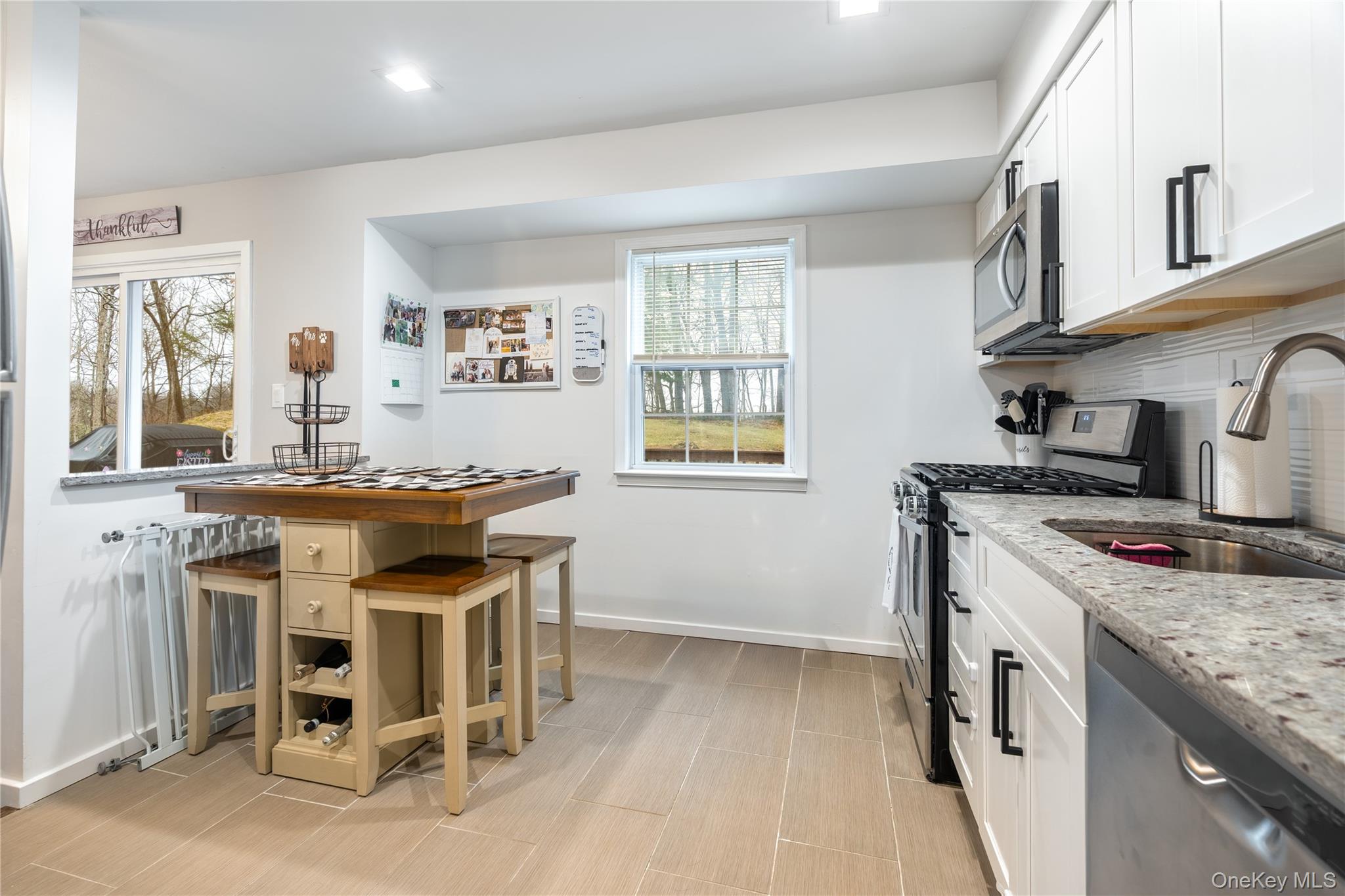 Tastefully updated Bi-Level in the heart of Red Oaks Mill, Town of Poughkeepsie! Main level features luxury vinyl plank flooring throughout, updated kitchen with SS appliances and granite countertops, dining area with deck egress, updated full bath with both common and en suite access, high efficiency forced air heat pump for heating and cooling, generously sized primary bedroom and 2 well sized bedrooms Fully finished lower level with amazing play area/gym/flex space and full laundry/powder room. Oversized 2 car garage with 10' ceilings and 8' doors allow plenty of space for cars as well as storage. New high efficient electric water heater. Exterior features almost half an acre of land, large privacy trees and deck for entertaining. Municipal water, sewer and natural gas! Excellent location, minutes to shopping, culinary grade restaurants, schools, Route 9, Taconic PKWY and more! Reach out today!