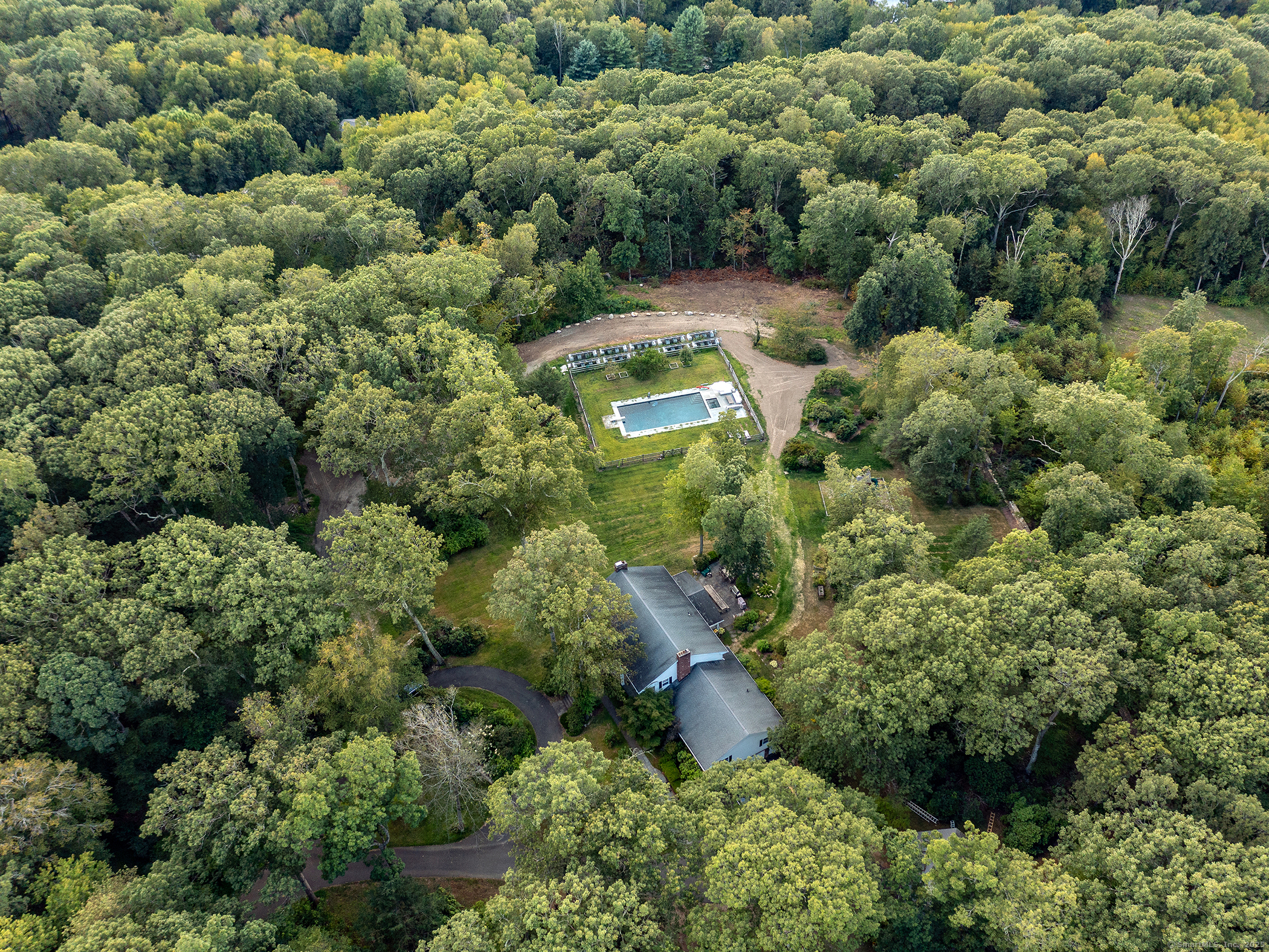Beautiful property in highly desirable Roxbury neighborhood. Traditional colonial with double story portico set back from quiet lane in park like setting with mature trees and gardens, huge pool, fruit trees, plenty of space for animals, stable, paddock. Detached garage in addition to under house garage with plenty of possibilities for guest house, studio, office. Large woodshed and enclosed vegetable and cutting garden. Extensive hime technology and solar field which powers home energy system and generator. Updated large chef's kitchen with dining area and sliders to large screened porch. Bluestone terrace with ample outdoor seating and dining.