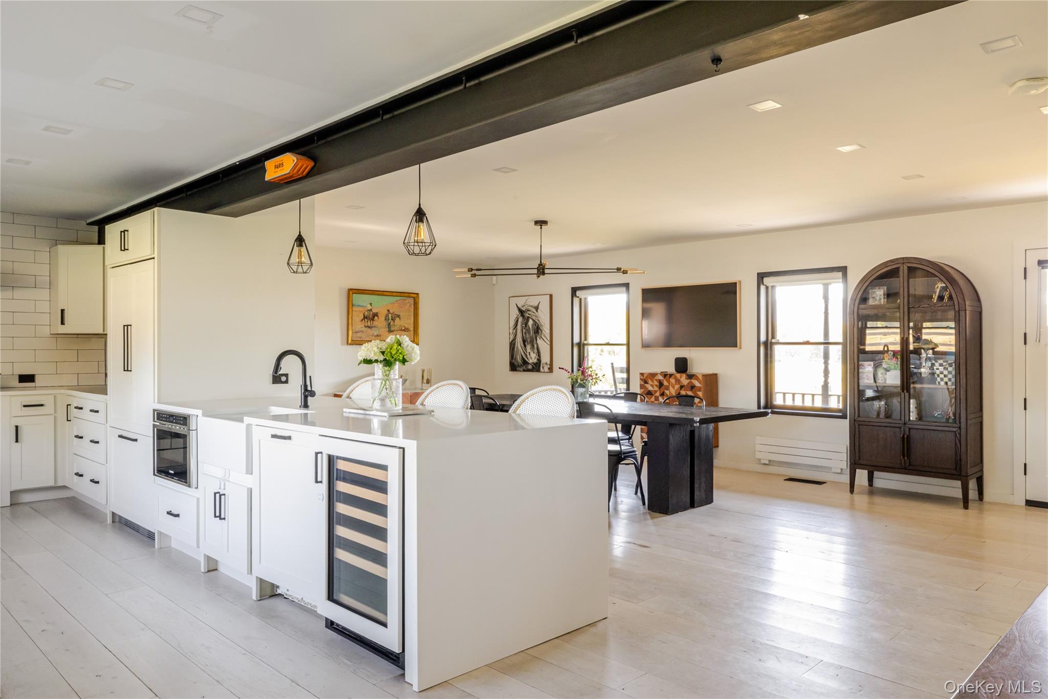Welcome to Slatefield Farmstead, a modern farmhouse set on over ten pastoral acres in peaceful Salisbury Mills. A long private drive leads to the broad-fronted façade of weathered clapboard and a durable tin roof that adds timeless appeal. Once a working dairy farm, the property preserves its historic character while offering every modern comfort. Its location near the Metro-North station means you can be in Manhattan in under 90 minutes, perfect for weekend getaways or weekday commuting without giving up space, privacy, or rural serenity. The 3, 000-square-foot farmhouse has open, light-filled spaces and refined details. Wide plank wood floors flow throughout, and vaulted ceilings in the bedrooms create bright, airy retreats. The chef’s kitchen features quartz countertops, a commercial-grade range, double dishwashers, and abundant cabinetry. A large dining room sits just off the kitchen, ideal for family meals or holiday gatherings. The family room provides casual space for relaxing, while a private in-law suite with its own entrance offers flexibility for guests or extended stays. Upstairs, the primary suite includes a newly renovated bathroom and hilltop views, and two additional bedrooms each have ensuite baths and convenient laundry access. The home has been upgraded throughout, with systems designed for ease and efficiency. A Lutron lighting system, whole-home Sonos sound, spray foam insulation, and new furnace and septic ensure comfort in every season. Modern essentials like a 26kW generator, water filtration, and security cameras provide peace of mind, while the careful renovations preserve the home’s character and craftsmanship. Outdoors, there’s room to create the lifestyle you’ve been dreaming of. A covered front porch overlooks open fields, and a custom stone firepit provides a gathering spot for evenings under the stars. The historic red barn, with two non-operational silos, can be restored for farming, transformed into a creative studio, or used as a social space. The five-bay garage is ideal for car enthusiasts, makers, or anyone who values storage and workspace. With horse paddocks, a pond, and rolling pastures, the property encourages both recreation and relaxation. Nearby, enjoy hiking at Schunemunk and Storm King State Parks, the Moodna Viaduct Trail, cultural visits to Storm King Art Center, and tastings at Brotherhood Winery, the country’s oldest winery. This is a home for those who value space, light, and the freedom to live fully in the countryside while staying connected to the city.