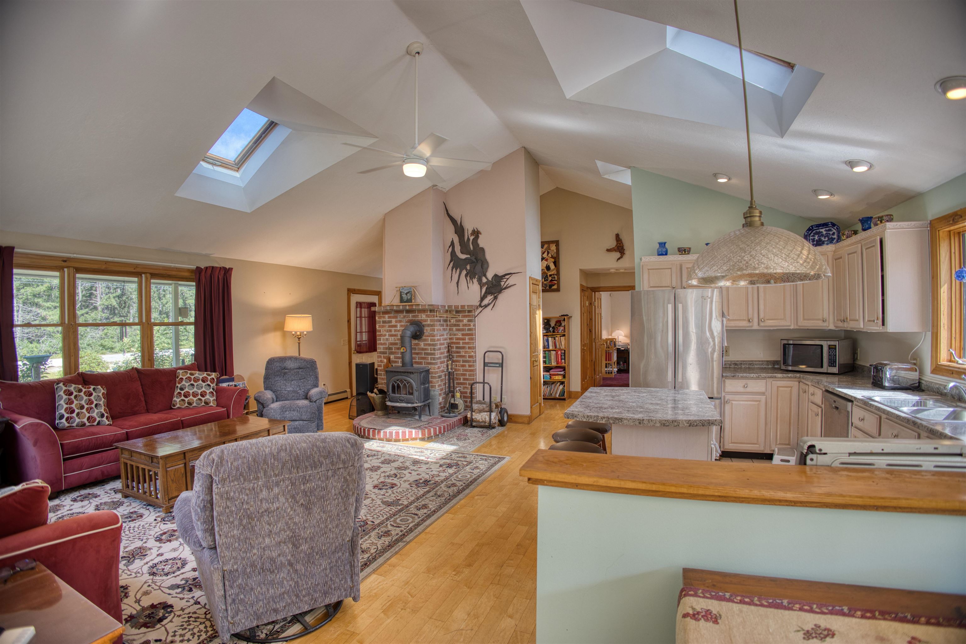 One floor living at its best!!! On 2 acres of flat ground in the Silver Lake neighborhood of Carved in Bark. Built in 1994 this spacious and sunlight filled home offers a primary bedroom suite with a full bathroom and walk in closet. Two additional bedrooms with a shared bathroom. A large sun filled living room with a wood stove defines the family/entertaining space with eat in kitchen and separate dining room attached. Outdoors includes a spacious rear deck with a patio under the hot tub, gardens surrounding the house, and a farmers porch in front. That attached two car garage with breezeway and detached two car garage round out this residence that also has walkable access to resident parking only at the beach on Silver Lake down the street. Come see. The sellers reserve the right to except an offer at anytime.