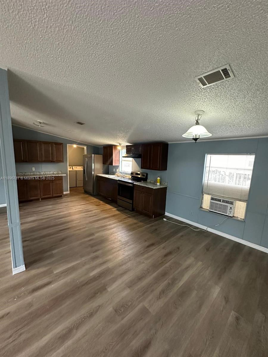 Welcome to this beautiful and cozy 3/2 mobile home. Freshly painted, amazing vinyl flooring, new kitchen cabinets, and a washer and dryer in the unit. It is a very spacious property, with a nice backyard and lots of parking space. Very well located, close to Publix, malls, and gas stations. Amazing schools.