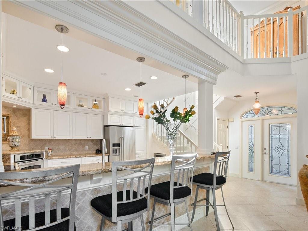 Walk to the club and all the wonderful Wyndemere amenities from this beautiful 3+bed/2. 5 bath condo in the charming neighborhood of Amblewood. Brand new roof, exterior paint and outdoor lighting fixtures complete this 2 story villa with a private courtyard patio for casual entertaining. A haven to come home to after a day of golf and activities. Thoughtfully designed chef’s kitchen with Italian inspired touches, granite countertops, stainless appliances and plenty of bar seating. Elegant crown moulding adds a beautiful finish to the vaulted ceiling in the great room, which has an open yet cozy feel. Large first floor primary suite and 2 guest rooms upstairs with an open air second story loft office/den. Relax in the sunny Florida room with impact vanishing sliders opening to your private patio for entertaining guests in a lush tropical setting, landscaped with mature bougainvillea blooms. Private driveway, 2 car garage with textured epoxy flooring. Screened front entry sitting porch and landscape lighting throughout. Low maintenance for those who prefer to lock and leave and want the convenience of proximity to the club. Wyndemere CC, an award winning Platinum Club, offers many extraordinary amenities, 27 holes of Arthur Hills golf, 10 Har-tru tennis courts with stadium seating, 7 pickleball courts with 165 person stadium seating for pickleball pro exhibitions, bocce, croquet, a resort style zero entry pool, golf learning center, putting greens, driving ranges, 2 pro shops and both casual and formal dining. A full service spa, salon and state of the art fitness center with a full schedule of group exercise classes and personal training, you'll feel like you live in a resort! This gated community is known for it’s friendly membership and active social schedule of events. Centrally located to all of Naples and a short drive to 5th Ave shopping and dining, Mercato, Waterside Shops, Venetian Village and the sugar sand beaches of the Gulf. Come enjoy this amazing lifestyle and own a piece of paradise!