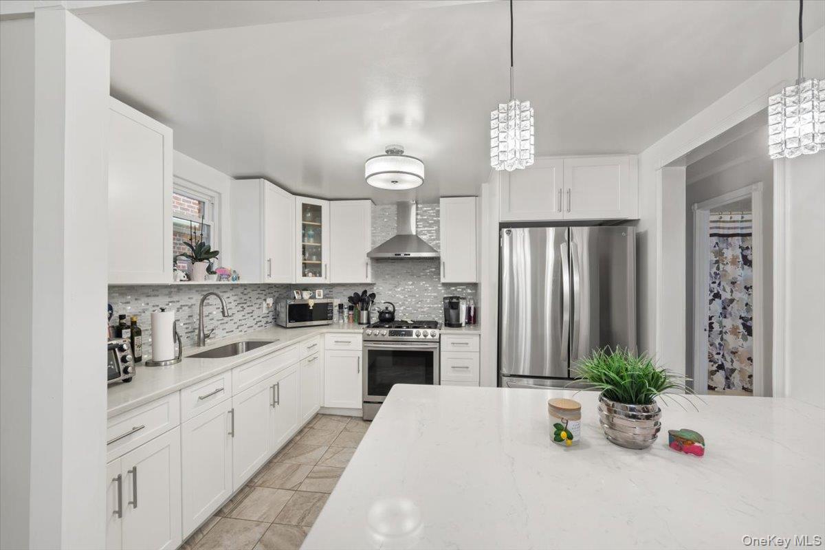Accepted Offer. This stately, brick, and detached two-family plus basement is being offered for the first time in 58 years. This Pelham Gardens gem has been lovingly maintained and updated. Featuring a three-bedroom one bathroom over a two-bedroom, with large den that could function as a third bedroom, one bathroom and full partially finished walk-out basement with private entry. The spacious updated three-bedroom 2nd floor unit features a modern kitchen, large formal dining room, living room, full bathroom, primary bedroom with private terrace plus two additional bedrooms. The 1st floor two-bedroom features a modern kitchen, large formal dining room, spacious living room, a den that could function as 3rd bedroom, updated modern full bathroom, primary bedroom with private porch, and 2nd bedroom. The walk-in basement offers an additional 1200 sq feet of space with laundry room, furnace room, full bath and entertaining space ideal for the most decerning in-law. Standout features include high-ceilings, newly finished floors in 1st floor unit, updated split system units one 1st and 2nd floors, new windows throughout the house, large backyard patio for outdoor entertaining and separate entries for every floor. Just a block from the #5 train at the Pelham Parkway/Esplanade station plus #8 and #12 buses. Conveniently accessible to all local hospitals Jacobi, Montefiore Einstein and Calvary plus I95, Pelham Pkwy, Bronx River Pkwy and the Hutchinson River Prkwy along with convenient shopping and restaurants on Williamsbridge Road.