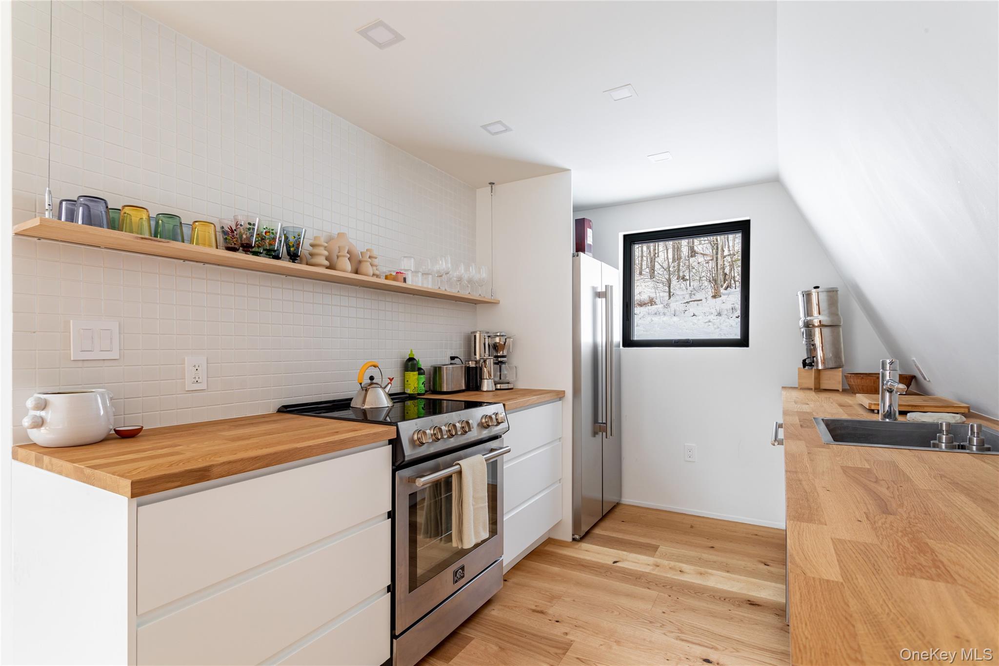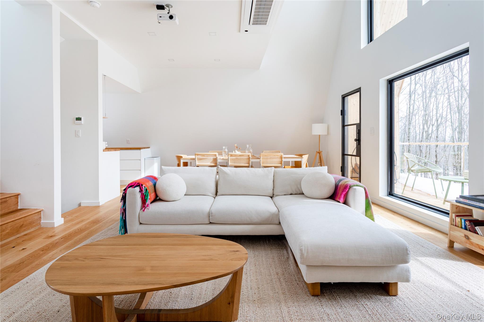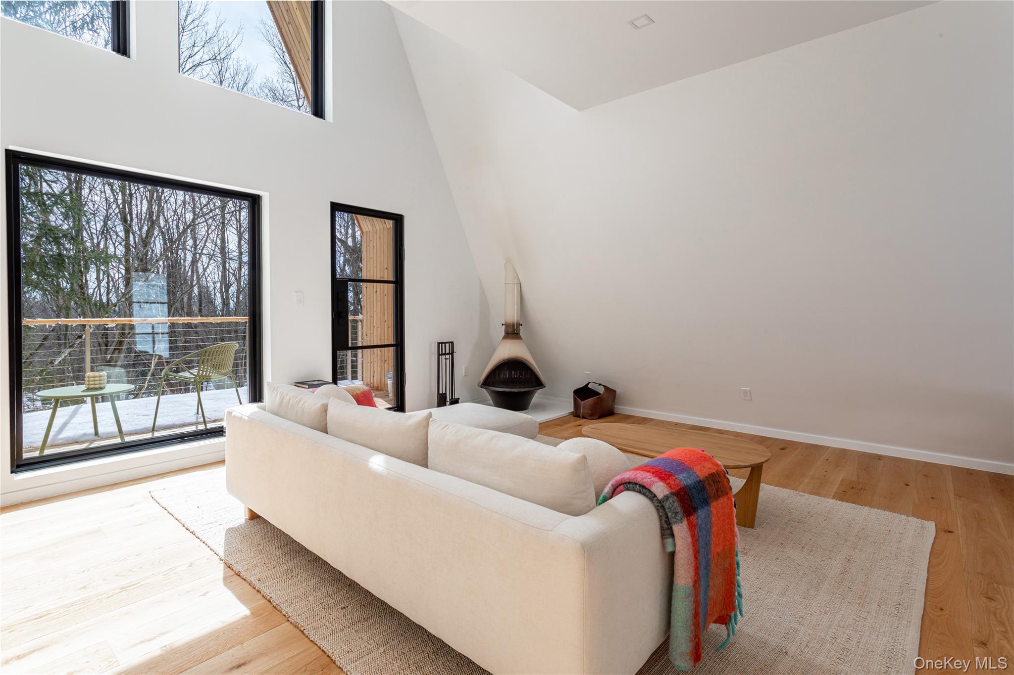 Tucked away in the woods just minutes from Minnewaska and Sam’s Point, this newly built A-frame offers the perfect blend of modern comfort and natural serenity. Designed by Martin and Nicolas Quirot, sons of renowned French architect Bernard Quirot, the home combines Scandinavian minimalism with Catskills character—light-filled interiors, natural materials, and seamless indoor-outdoor flow. The residence features four bedrooms and three bathrooms, with an open-concept layout centered around a double-height living space with electric fireplace framed by walls of glass that bring the forest inside. The home is all-electric and energy-efficient, with five temperature zones that can be controlled remotely from anywhere in the world. Outside, a private hot tub sits beneath the trees, offering a peaceful retreat after a day exploring the area’s countless waterfalls, trails, and swimming holes—many just minutes away, including Vernooy Kill Falls and the Blue Hole. Whether as a weekend escape or a high-performing short-term rental, this property captures the essence of Catskills living: design-forward, sustainable, and deeply connected to nature. Furniture can be included for a truly turnkey experience.