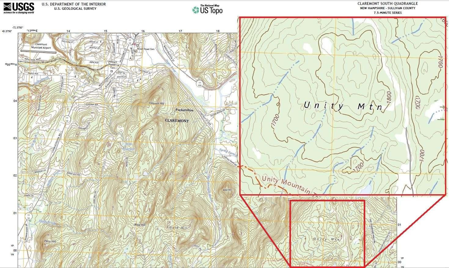 Security by Obscurity: Own Mt. Unity, NH! (1, 870 ft. , 570 m) **NOTE: the price of this site will be reduced by $100, 000 per month continuously ("Dutch Auction"). Bitcoin accepted. ** Located in the Dartmouth-Sunapee Vacation Region of New Hampshire, the "Live Free or Die" state, this 100 acre site (tax lots 323 and 858) is perfect for those seeking privacy, high security/defensibility, accessibility, and exceptional 360 degree views. Land includes 94 acres in “current use”, and 6-acre buildable lot (former US Cellular transmission tower location, 126' E/W x 45' N/S) on a second high point aside from the summit of Mt. Unity, with commercial power at site; commercial grade high-capacity/high-reliability fiber optic internet on site with 10 Gbps+ data transfer. At site boundary, Mica Mine Road is Class VI; driveway to building site is 900 ft. long, ascending clockwise. The summit of Mt. Unity is appropriate for helipad; its north face cliff (35 to 45 ft. , see attached elemental/geological sampling results for metals on site) provides a perfect access point for your underground lair / ‘Batcave’. Vegetative cover is northern hardwood forest, with pockets of hemlock, pine, birch, and spruce. Approx 15 minutes direct/helicopter from Lebanon airport and 30 minutes from Manchester. Ten miles to Lake Sunapee, six miles to Connecticut River and Vermont border. Borders Sullivan County Conservation Lands to the south. Lat: 43. 327970, Long: -72. 270980.