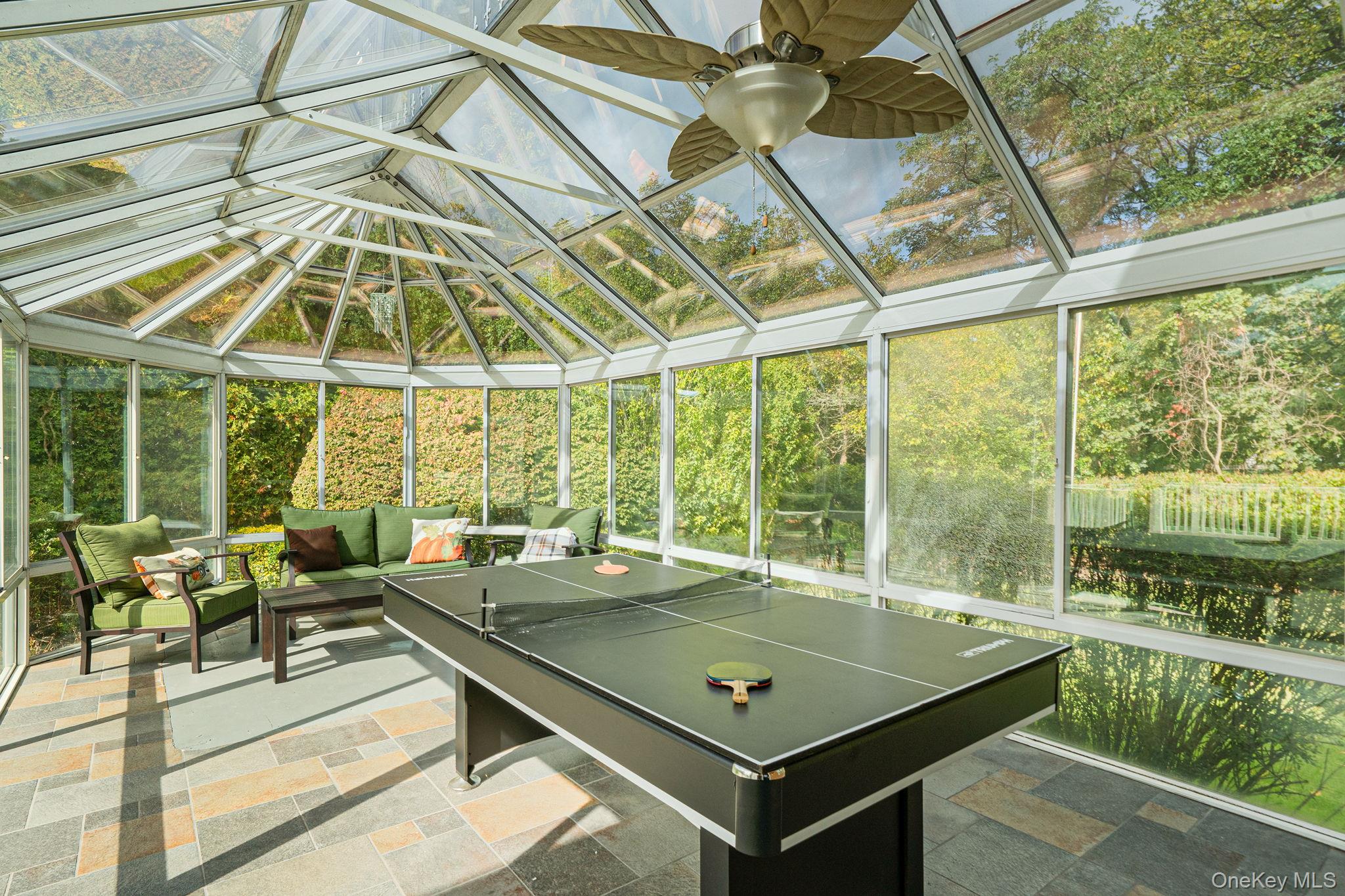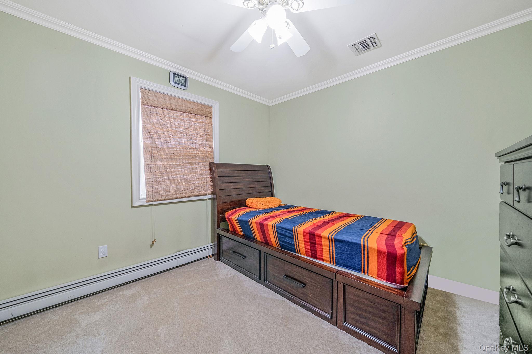 Saint James Colonial in Smithtown Schools, built 1998, on a quiet cul-de-sac. A grand two-story foyer leads to formal living and dining rooms, a fireplace family room, and an eat-in kitchen with granite countertops. Off the rear, a glass-wrapped sunroom overlooks the backyard and opens to a large composite deck. Main level highlights include hardwood floors, powder room, and laundry. Two-car garage with electric-car charger, 9-zone in-ground sprinklers, central air. Upstairs offers four bedrooms and two full baths, including a comfortable primary suite. The walk-out lower level provides flexible space for multigenerational needs, in-laws, or an au pair arrangement: two finished rooms currently set as sleeping areas, a living/rec area with a wet bar, a full bath, and its own washer and dryer, plus a separate entrance. Owned solar panels (2020) help the property generate its own electricity; per seller, PSEG averages about $17/month to keep the account active. East–west orientation, deck and sunroom for everyday enjoyment, and a convenient location near all that Saint James offers.