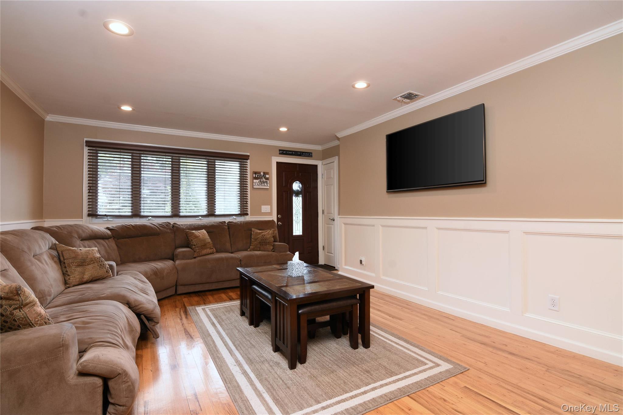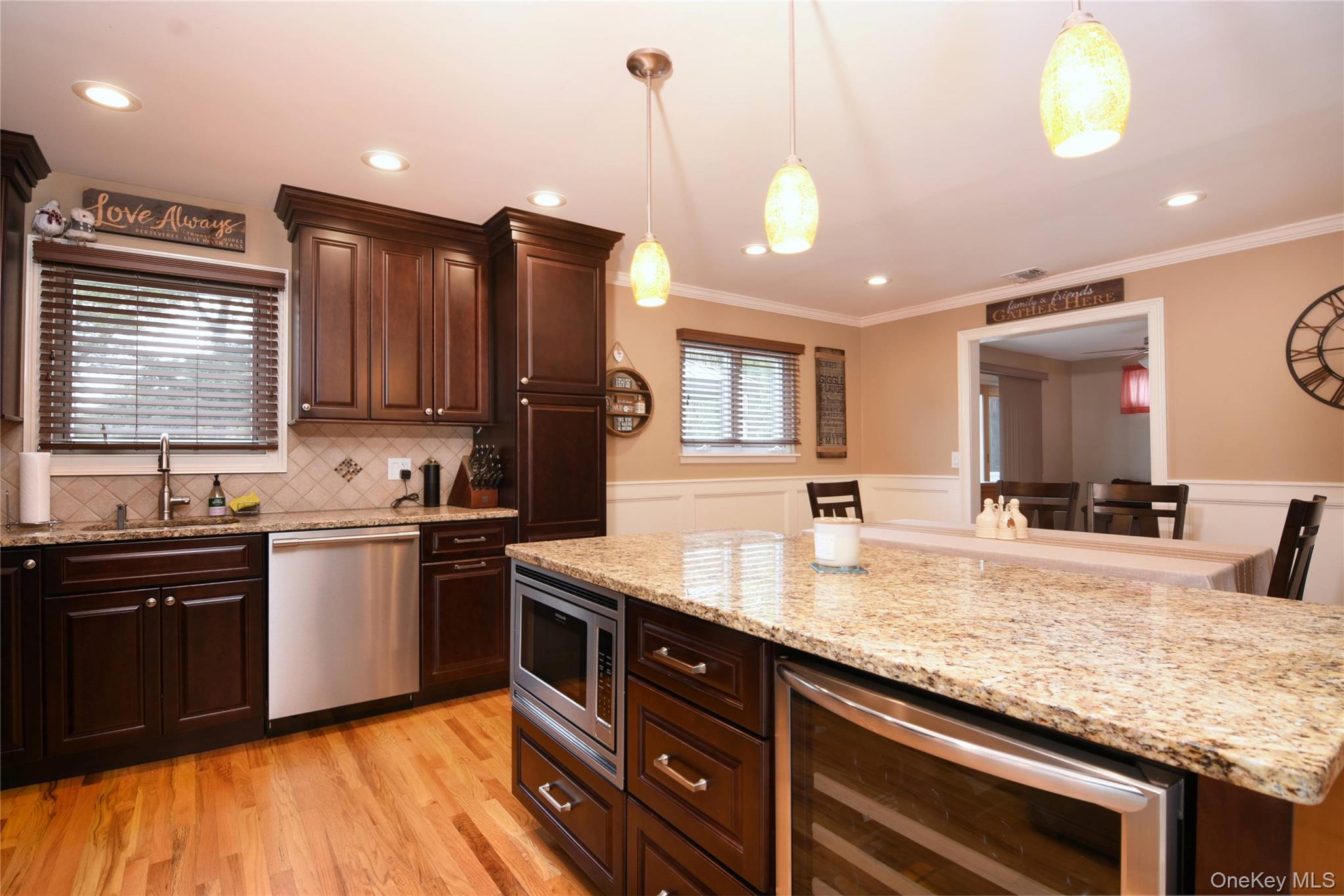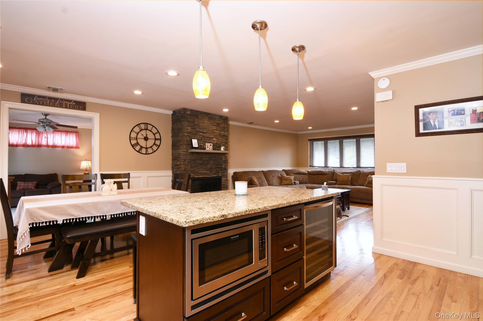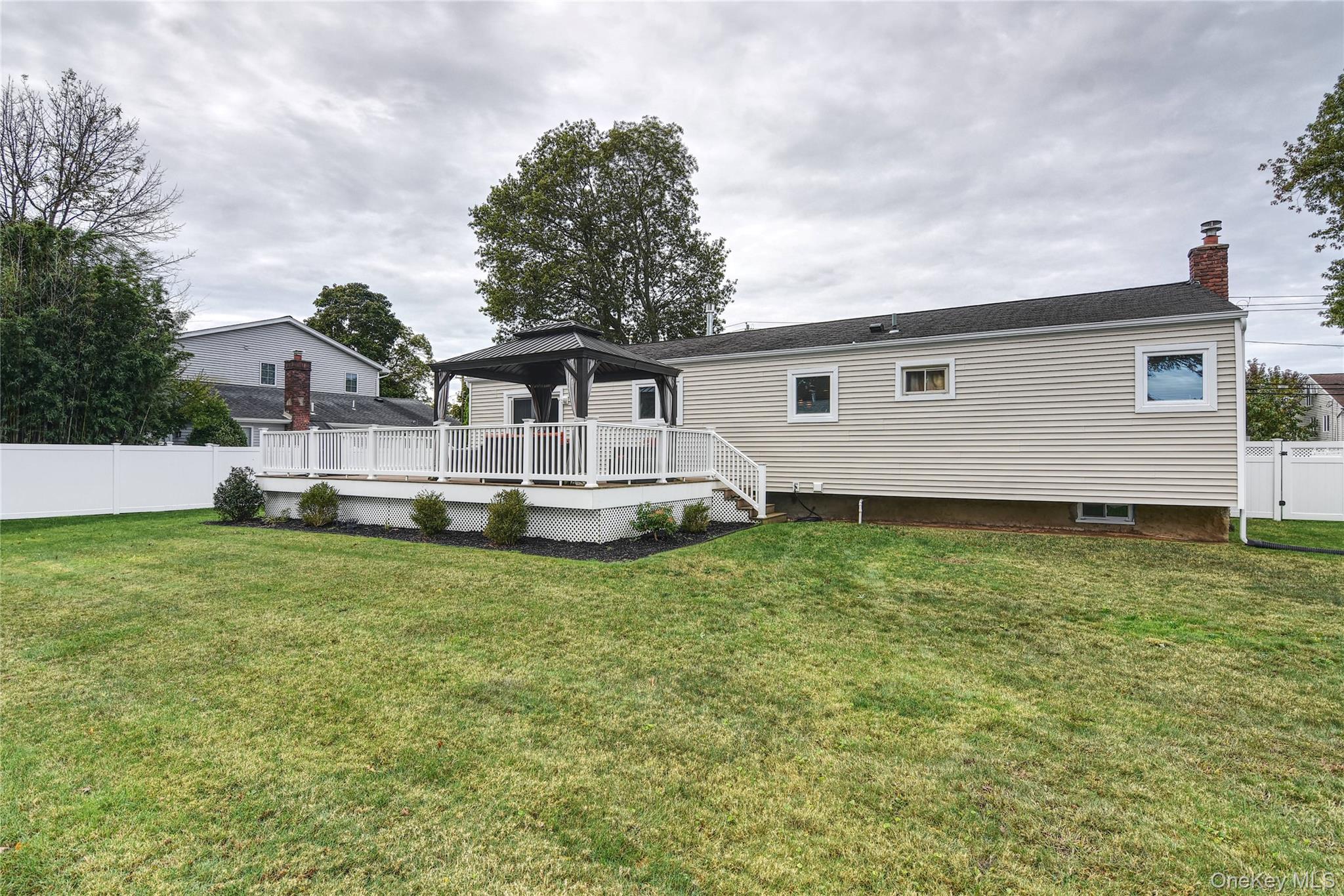 Welcome to this beautifully updated 3 bedroom, 2 bath ranch boasting a bright and airy open floor plan, stunning kitchen with center island, granite countertops, wine fridge and ss appliances. Enjoy the warmth of a brand new gas fireplace, along with gas heat, and central AC for year-round comfort. Additional highlights include, family room, full basement, brand new siding and gutters, 150 amp electric, newer gas dryer/washer, one car garage and a brand new driveway. Step outside to a spacious large trex deck, overlooking meticulously manicured grounds, pvc fencing, inground sprinklers, and elegant paver accents. All this and much more, located within the highly sought after Connetquot School District -just minutes from the Ronkonkoma train station, LI MacArthur Airport, major highways and surrounded by plenty of shops and restaurants. Begin your new journey in a place you’ll love to call home.