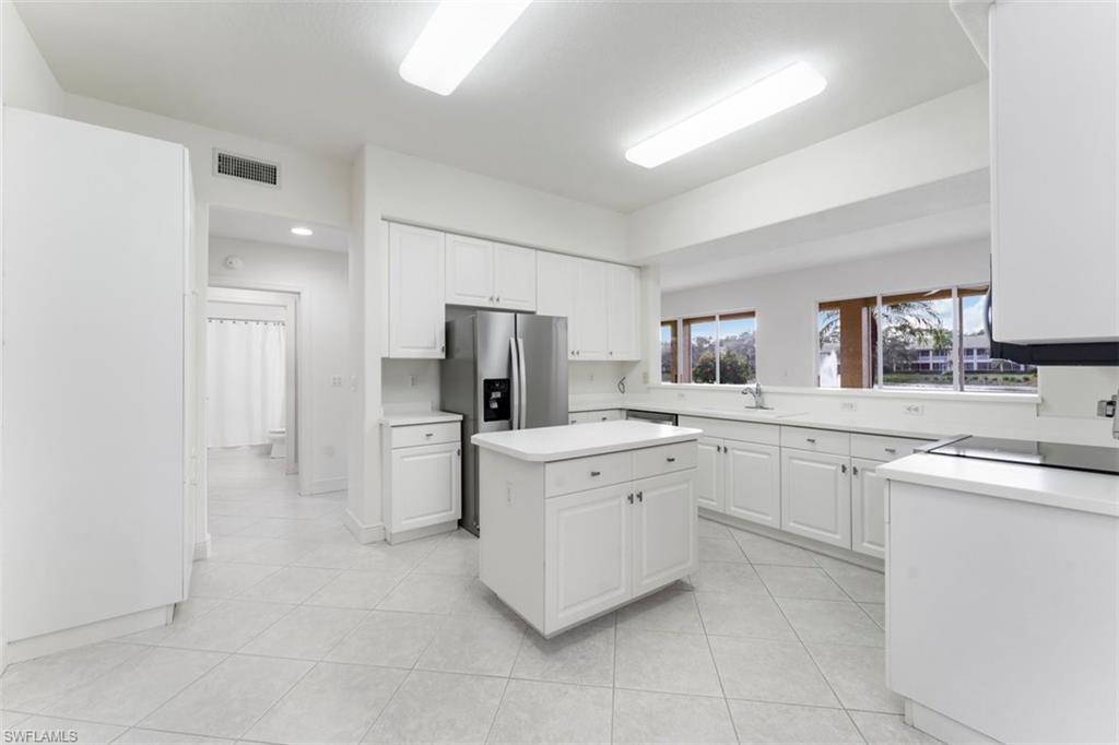 The kitchen and foyer are beautifully tiled on the diagonal, complemented by an elegant decorative inlay in the foyer. The kitchen is enhanced with upgraded easy pullout drawers, adding both style and functionality. Additional upgrades include a NEWER roof and gutters installed in 2020, offering low maintenance living and peace of mind for years to come.