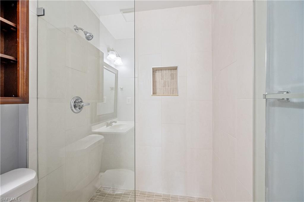 Welcome to your beautifully renovated 2 BR / 2 Bath ground level condo with lovely pond views. The Woodgate at Naples community appeals to both snow-birds and full-time residents: only minutes to 5th Avenue & Naples' beaches and close to Marco Island. You will really appreciate the pond views from the living areas & primary bedroom and the huge walk-in closets in BOTH bedrooms. The condo is clean, freshly painted & move-in ready with tile floors throughout for easy maintenance. The spacious kitchen features granite countertops, solid wood cabinetry, stainless steel appliances, including a refrigerator with an ice maker. Kitchen includes a window over the sink, breakfast bar & a pass through opening to the dining area. Additional highlights include new interior doors and a full size washer & dryer. Your reserved parking space is located just outside your front door. The heated pool area with a pond view is a short walk away.