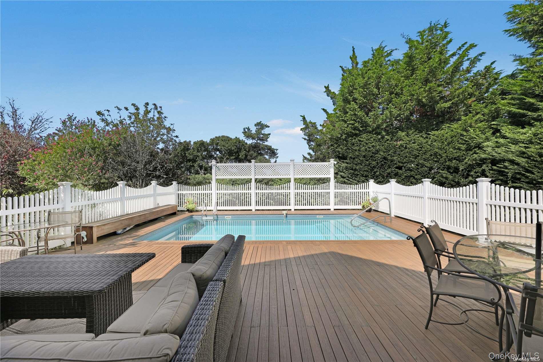 Experience the quintessential Hamptons lifestyle in this immaculate Remsenburg residence, ideally located south of South Country Road on a quiet waterfront street just moments from Moriches Bay. This serene summer retreat offers refined comfort, privacy, and natural beauty, the perfect escape for those seeking the essence of coastal living. Surrounded by lush landscaping, this beautifully maintained home invites you in with airy, sun-filled interiors and vaulted ceilings that enhance the open flow of its main living spaces. The chef’s eat-in kitchen is a showpiece, featuring abundant natural light and seamless access to the expansive deck ideal for al fresco dining or entertaining under the Hamptons sky. The first floor includes a welcoming guest bedroom, a full bath, and a bright and cozy living room. Upstairs, the master suite, where large windows frame picturesque views of Moriches Bay, offers a private bath with jacuzzi tub and walk-in shower. Two additional bedrooms and a generous bonus room provide flexibility for guests, a home office, or a creative retreat. Step outside to your private backyard oasis: a sun-drenched deck with an in-ground pool, surrounded by mature trees and lush greenery for ultimate seclusion. Whether lounging poolside, hosting summer gatherings, or enjoying quiet mornings, this home offers the ideal setting for relaxation and connection. Practical amenities, including a two-car garage with interior access and a double-wide driveway, ensure effortless convenience throughout your summer stay. Enjoy walking access to Moriches Bay, full Southampton Town Beach privileges, and proximity to Westhampton Beach Village, where you’ll find a myriad of boutiques, dining, and the newly revitalized Main Street, just minutes away. Available Summer 2026 - experience Hamptons living at its most serene and stylish! **Available Summer 2026: June ($25K), July ($30K), August-LD ($35K), MD-LD ($90K). Utilities not included. **
