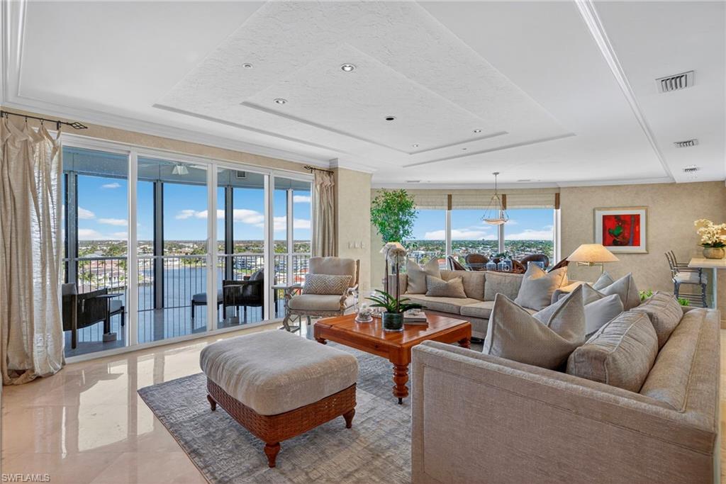 This exceptional 11th-floor residence occupies the coveted 01 stack, offering stunningly gorgeous panoramic Gulf and bay vistas through expansive walls of glass. Ascend the elevator which opens directly into your residence to a welcoming foyer leading to open-concept living spaces designed for both elegance and comfort.