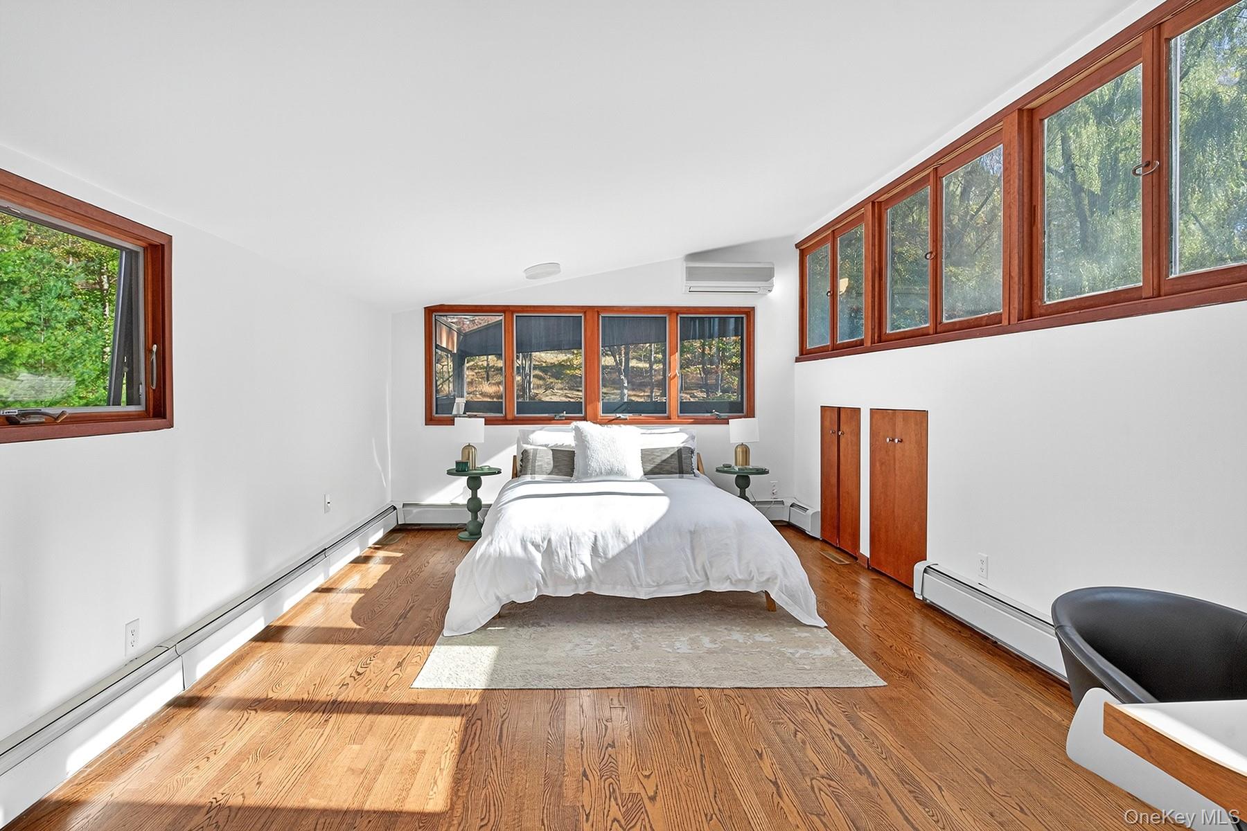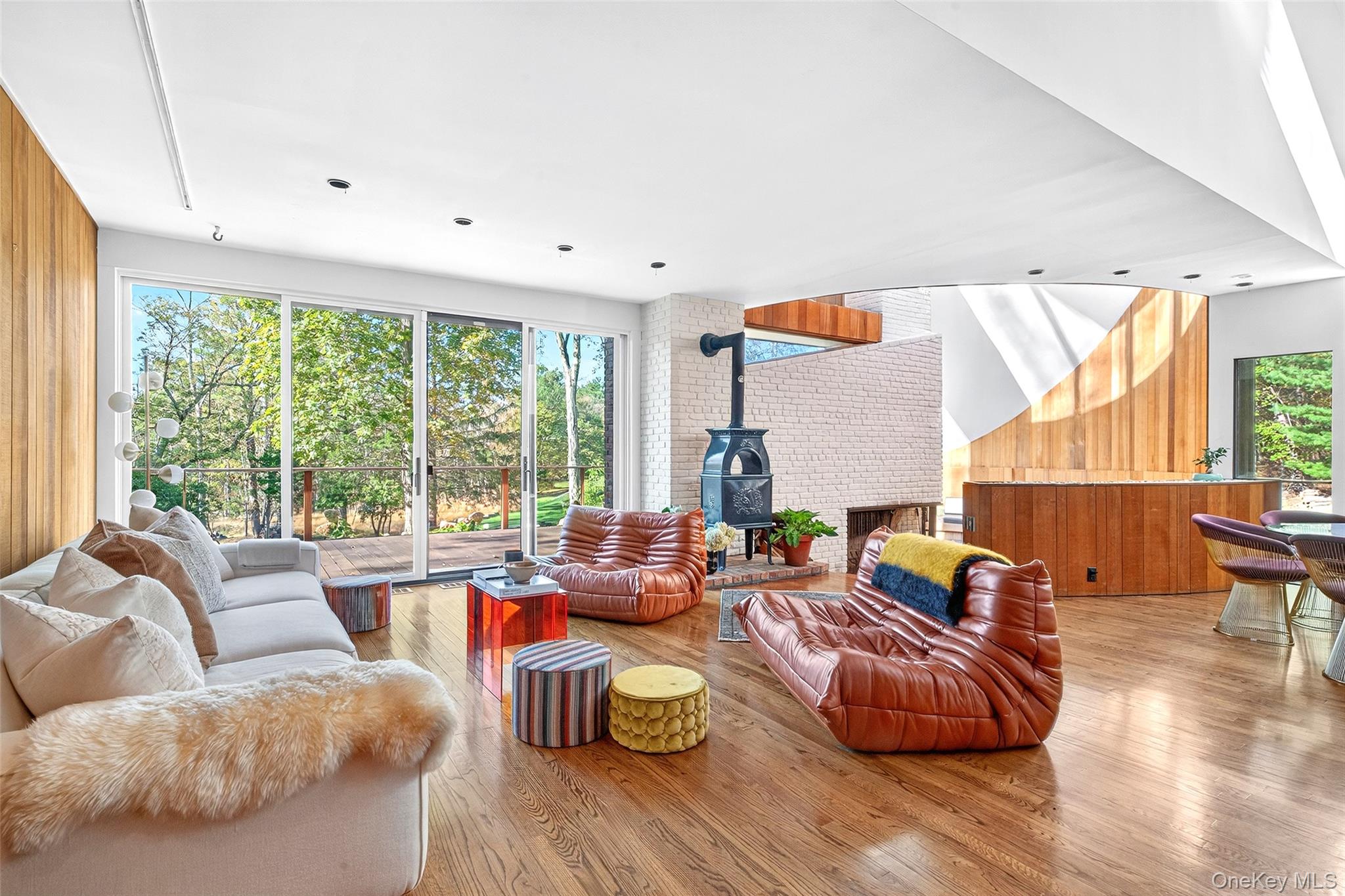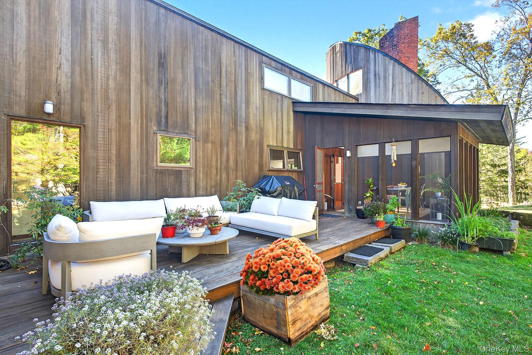 Set on nearly 9 serene acres in the heart of Woodstock's historic Byrdcliffe Arts Colony is a rare synthesis of architectural precision and natural harmony—an embodiment of award-winning architect John Storyk's deep understanding of space, sound, and site. Designed in 1969 at the very beginning of Storyk's now-legendary career—just after his groundbreaking work on Jimi Hendrix's Electric Lady Studios and the famous Bearsville Theatre—this redwood-clad contemporary home reflects his signature style: intuitive flow, warm natural materials, and an architect's sensitivity to both form and function. The 4 BR, 4 Bath, 4, 000+ sq ft (includes guest/pool house) single family home is privately sited with a pond, heated in-ground salt water, gunite pool, and massive guest/pool house. This Mid-Century Modern sanctuary is defined by its soaring ceilings, custom mill work, and an organic relationship with the surrounding landscape. Every room is bathed in natural light through walls of glass, and oriented to maximize the surrounding views of meadow, woods, and sky. A dramatic curved, sunken living room—anchored by a large brick fireplace—evokes the sensorial immersion typical of Storyk's performance spaces. Here, spatial geometry and acoustics are not incidental but essential; offering not just a place to live, but a place to listen and feel. At the heart of the home is a Poggenpohl kitchen—a clean, functional workspace designed with the home chef in mind—that opens to dining and gathering areas which flow out effortlessly to the screened porch, expansive decks, landscaped gardens, and tranquil pond beyond; all designed to foster serenity and creative inspiration. Every line and threshold reflects Storyk's belief that architecture should support creativity and calm—never compete with it. Private spaces include a luxurious first floor primary suite and a guest apartment (with its own entrance) featuring a kitchen, full bath, and private deck—ideal for hosting, creating, or retreating. Across the entire property the interior volumes are balanced by exterior spaces with curated meadows, and reflective water elements including the large, heated, salt water, in-ground, Gunite pool) all reinforcing the idea of the house as an instrument tuned to its environment. While John Storyk is globally known for acoustically perfect studios and world-class performance venues, this home reveals another side of his genius: the quiet artistry of domestic space, where light, proportion, and stillness are as important as sound. A residence like this—designed by one of the 20th century's most innovative architectural minds, and located in a cultural enclave as storied as Byrdcliffe—is a truly singular offering. 289 Upper Byrdcliffe Road is not just a home, but a living, resonant experience—thoughtfully conceived, masterfully built, and deeply rooted in the creative spirit of Woodstock. Please note: Additional town-approved plans exist for a separate structure with its own septic and driveway entrance. All this coalesces to make an extraordinary compound with limitless options for a life well lived.