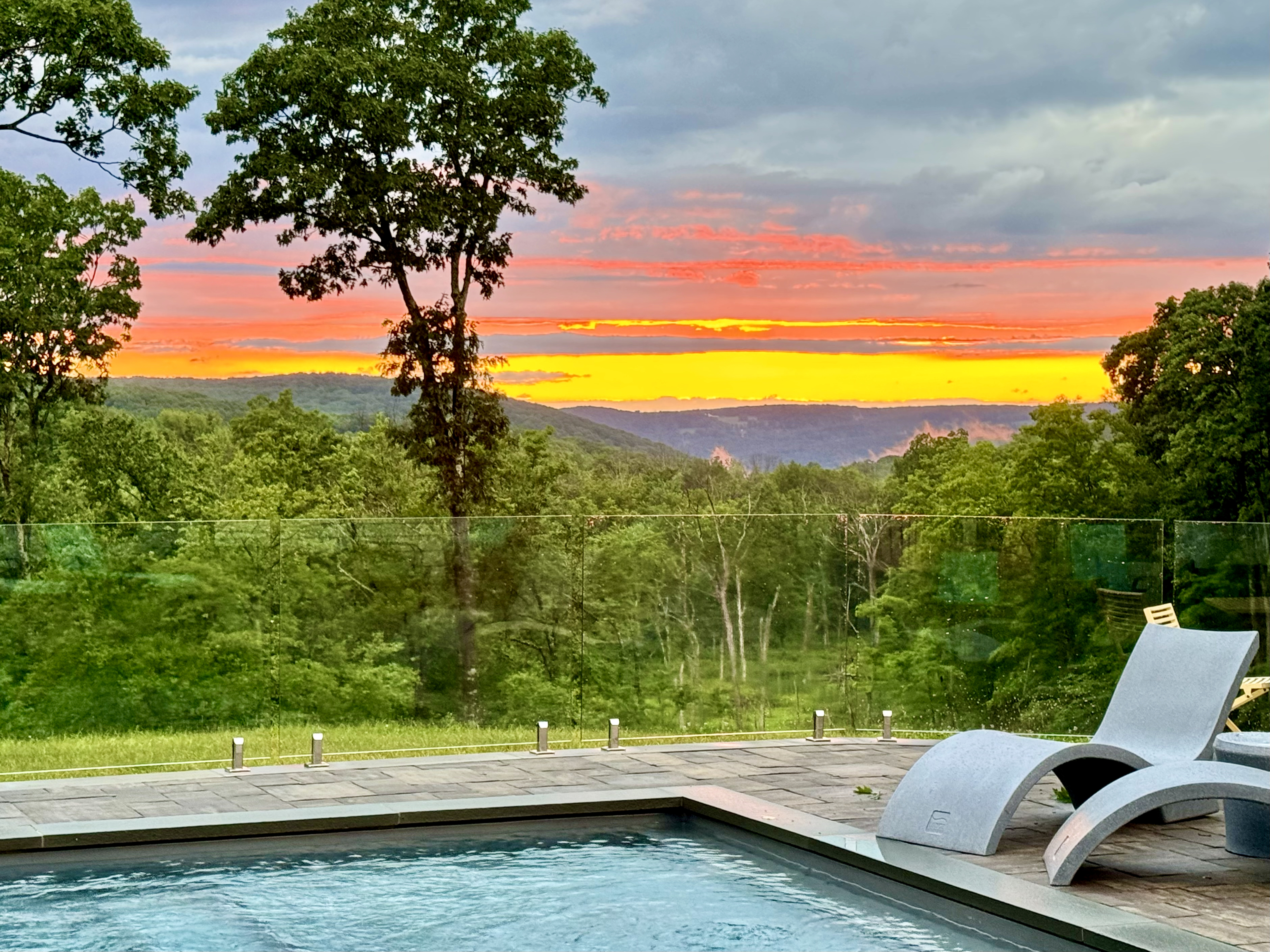 Perfectly positioned to capture breathtaking sunset views, this beautifully updated four-bedroom residence blends comfort, sophistication, and functionality. The home's chef-inspired kitchen features dual workstations and opens seamlessly to a cozy sitting area that extends outdoors to the pool and entertaining space. Here, you'll find a charming pool house, built-in grill, and bluestone patio-ideal for gatherings or quiet evenings under the stars. Inside, the great room impresses with walls of glass that flood the space with natural light and a fireplace that anchors the room with warmth and style. The main-floor primary suite offers a spa-like retreat with a soaking tub, separate shower, and dual walk-in closets. The main level also includes a formal dining room, a private office, and the convenience of a residential elevator providing easy access to all levels. Upstairs, there is an ensuite bedroom and two additional bedrooms that share a well-appointed bath. The finished lower level expands the living space with a full bath, laundry area, and flexible rooms perfect for a media room, gym, or recreation area. Set on a private 10+ acres featuring a picturesque pond and a detached barn ideal for a car enthusiast or hobbyist, this home offers the perfect balance of elegance, privacy, and modern living.