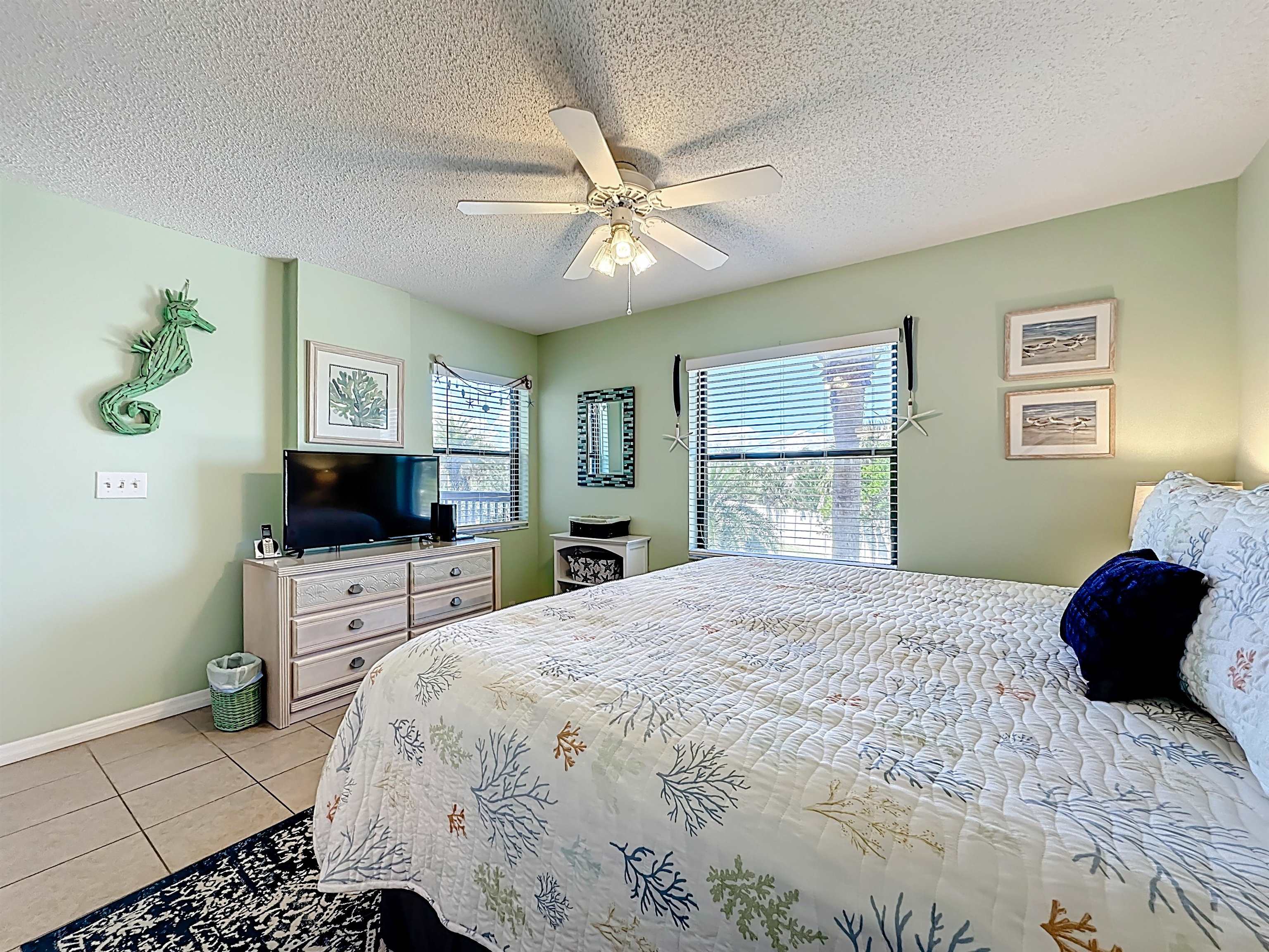 This Coastal Casual 2BR/2BA condo in the heart of St Augustine Beach is ideally situated in an ELEVATOR BUILDING. You'll discover true coastal living at its finest in this beautifully maintained light-filled corner unit offering extra privacy and windows that capture the refreshing sea breeze and sunshine. Neutral tile throughout for the perfect beach lifestyle and minimal cleanup. Beach cottage decor is included in the sale and makes this truly turnkey with confirmed bookings thru 2026 in place for immediate income. Whether you're searching for a vacation retreat or 2nd home this condo offers the perfect blend of comfort, convenience and charm in one of the beach's most desirable oceanfront complexes. Step outside and enjoy direct beach access from the private beach walkover or spend the day splashing in one of the two tropically landscaped pools - one heated in the winter for year-round enjoyment and exercise. Speaking of exercise, Ocean Village Club amenities include exercise room, clubhouse, two pools, tennis courts, shuffleboard courts, gated entrances, grilling area steps outside your front door so your steak or veggie burger can be served hot off the grill and more. This ideal location is steps to the beach or a short stroll to some of the area's best restaurants, coffee shops and boutique shopping as well as entertainment. Bike to the weekly farmers market at the pier or St Augustine Ampitheater and to the many big-name concerts scheduled. Minutes to the historical lighthouse, Alligator Farm and downtown historical St Augustine and it's treasured sights and charm. Ocean Village Club is a pet-friendly complex that allows owners to have two pets with no weight restriction and renters allowed one with the exception of "aggressive breeds" per their master insurance policies. Monthly condo fees include elevator for building, high speed Wi-Fi and DirecTV cable, water, sewer, trash collection and recycling plus all amenities and maintenance of the exterior of the buildings, grounds and pools. This well-maintained complex has completed their Milestone Inspection Report and Structural Integrity Reserve Study and will not need a special assessment for the minimal work with funding from their Reserves. **Owners make a "13th Payment" of $450 towards Reserve Funds. Buyer is aware and assumes all future payments** 3D Video Tour available to view at: https: //nodalview. com/s/3XEK0Ma6D5yBYGCWksRstm