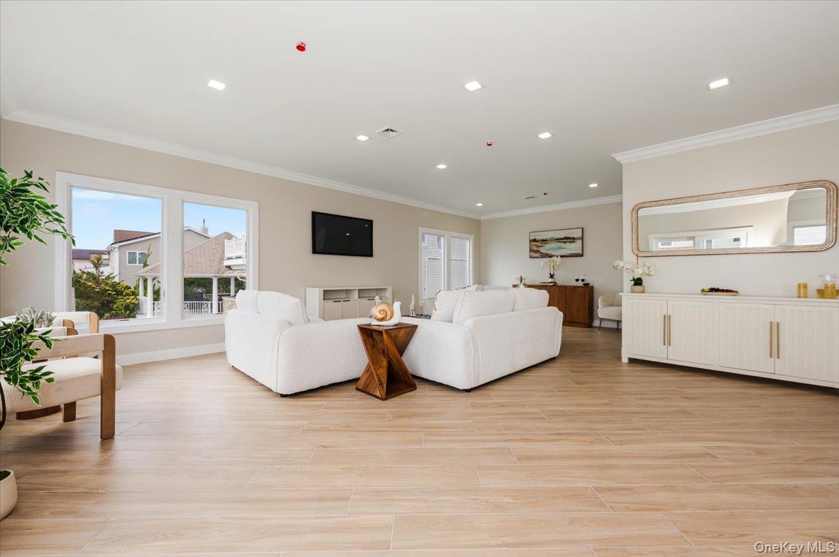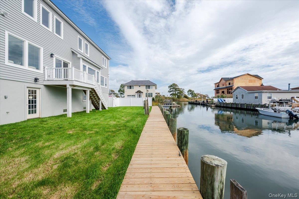Welcome to this exquisite newly built Colonial by OZ General Contracting, a stunning three-level waterfront home offering 90 ft of brand-new PVC bulkhead with direct canal access and just one block from the Great South Bay. Built to FEMA and town codes, this property combines peace of mind with exceptional craftsmanship. The first level features an 8 ft ceiling, a spacious four-car tandem garage, a large unfinished bonus room, and a utility room. On the main level (2nd floor), oversized Andersen 400 Series windows flood the open floor plan with natural light, while elegant porcelain tile floors add warmth and style. The heart of the home is the custom chef’s kitchen with maple cabinetry handcrafted by OZ General Contracting, backed by a 3-year warranty, crown molding to the ceiling, transom glass display cabinets, Cambria quartz countertops throughout, and a large 9 ft x 3 ft island with a stunning waterfall edge. Let’s add some dramatic lighting with under-cabinet and toe-kick lighting to create the perfect ambiance. A large walk-in pantry with built-in shelving, cabinetry, sink, and countertop space offers the perfect spot for a coffee bar or prep station. The dining area comfortably accommodates a banquet-sized table and flows seamlessly into the spacious living room, which is perfect for relaxing and entertaining. The living room expands into an additional area that can be used for a bar, extra seating, or a possible home office. A full bathroom completes this level. The third floor features select oak wood floors, and the buyer has the option to choose their stain color for the floors, railings, and stairs. The serene primary suite includes tray ceilings, crown molding with uplighting, a luxurious en-suite bathroom, and a custom walk-in closet. All bathrooms feature Cambria quartz vanity tops with lighting under the vanities, creating a seamless and elegant finish throughout the home. Three additional bedrooms share a beautifully designed hall bath, and the laundry closet is conveniently located on this floor. Additional features include a new dock, sprinklers in the grass areas, fire sprinkler system on each floor, two Navien systems providing hot water on demand—the most efficient way to create hot water so you’ll never run out while showering—two-zone heat and CAC, 200-amp electric service, and over 100 hi-hats throughout. The whole house is foam insulated, making it highly energy efficient and allowing for lower utility bills. Whether you're enjoying stunning water views, entertaining in the open-concept living space, or docking your boat right in your backyard, this property offers an exceptional waterfront lifestyle and is truly a must-see. (NOTE-for GPS, use 3670 Somerset Dr, it's behind that house on S. Somerset Dr)