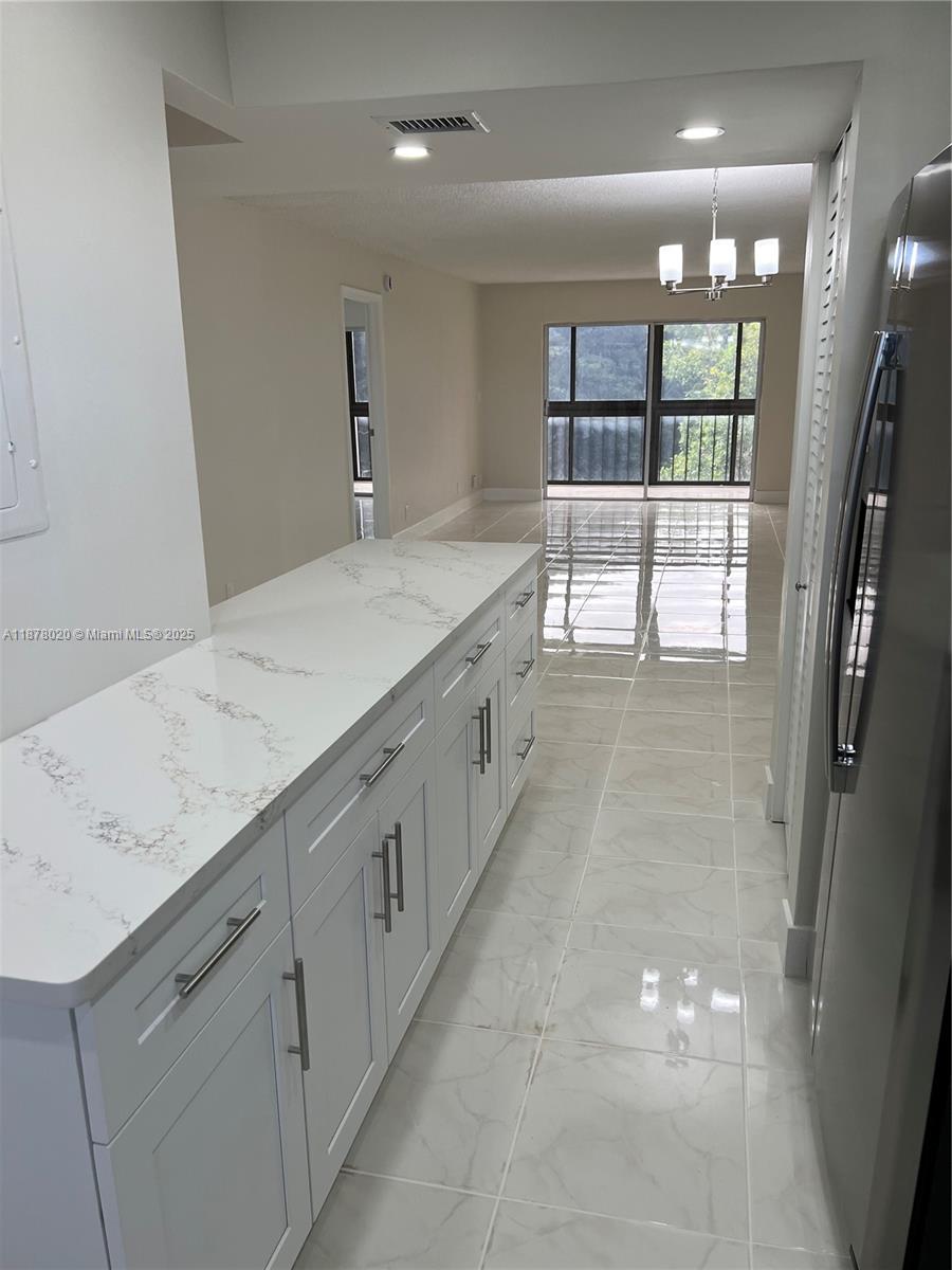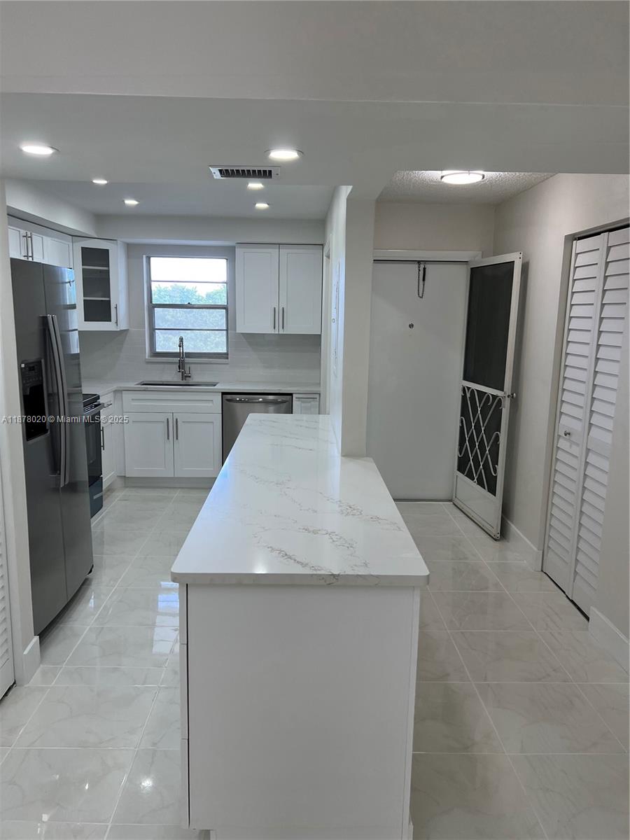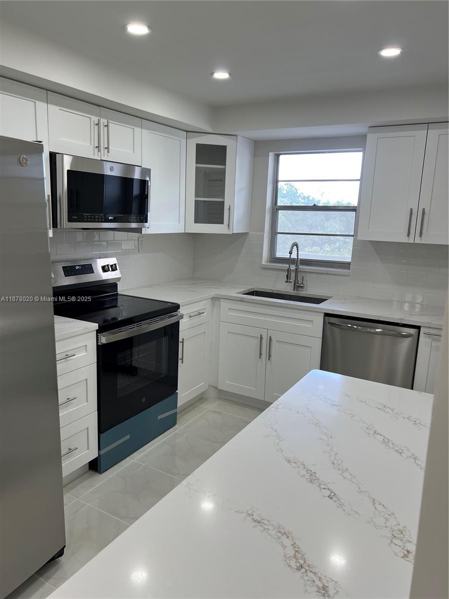 Welcome to Residence #405 at Hi-Greens of Inverrary, an exclusive 55+ gated community known for its peaceful atmosphere. This fully remodeled 2BR/2BA condo features an open-concept kitchen with quartz countertops, stainless steel appliances, and custom kitchen cabinets. Both bathrooms are newly renovated and the primary suite offers two walk-in closets. Enjoy new ceiling fans, fully tiled throughout, fresh finishes and fresh paint through out. Relax on your beautiful enclosed patio with glass panels that open to overlook your lush greenery. Low HOA of $559 Monthly! READY TO MOVE-IN!