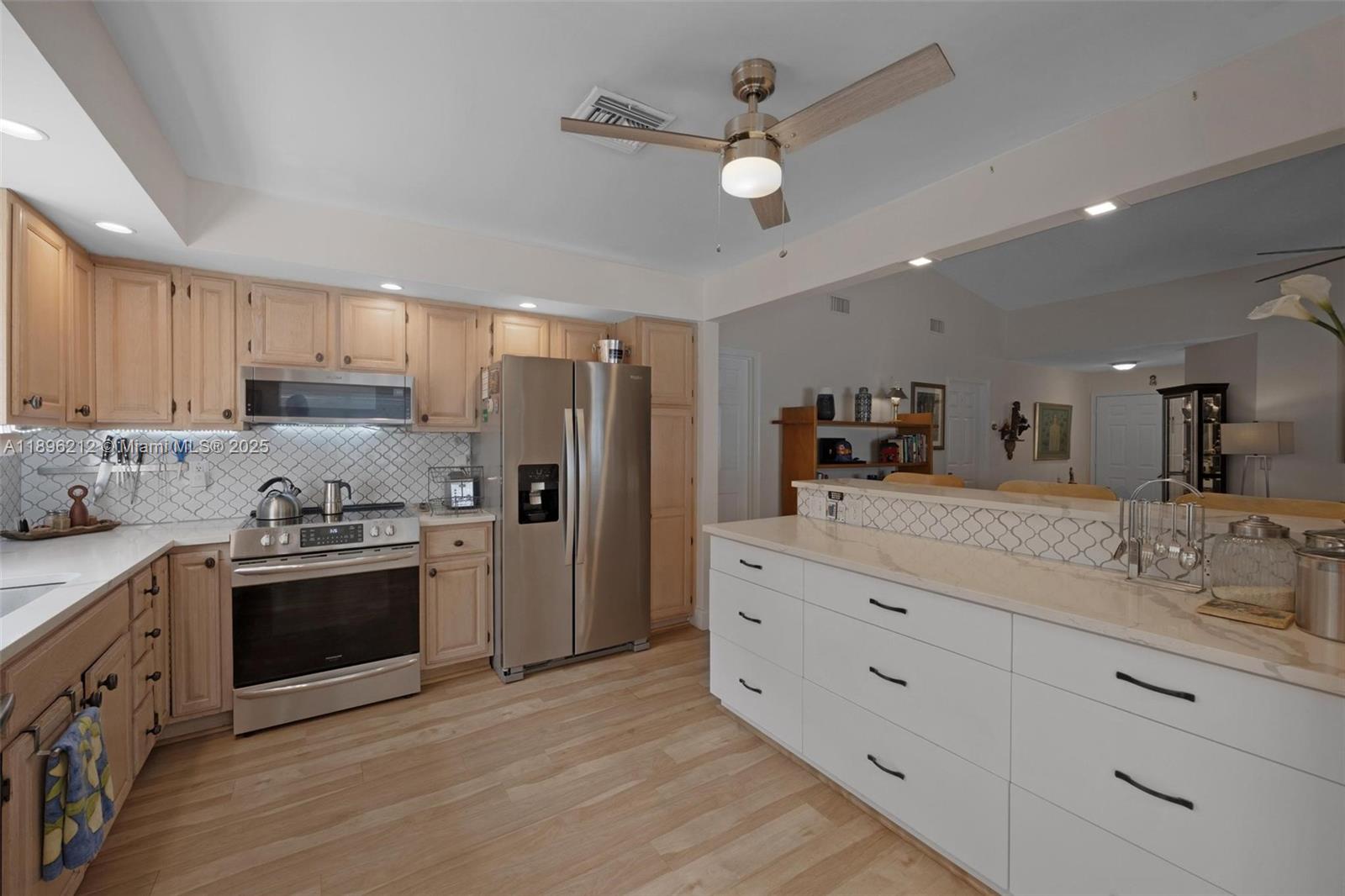 Beautifully updated 2BR/2BA free standing villa with 1-car garage in the gated community of North Gate at Keys Gate. Home has been re-plumbed and features a modern kitchen with Kraftmaid cabinets, stainless steel appliances, and open snack bar with storage drawers. Both bathrooms are updated, and waterproof laminate floors run throughout. Vaulted ceilings add spaciousness, while the original patio has been legally enclosed to create extra under-air living space. Backing to the canal, this home combines style, comfort, and a prime location in a secure community. Easy to Show & Ready to Go!
