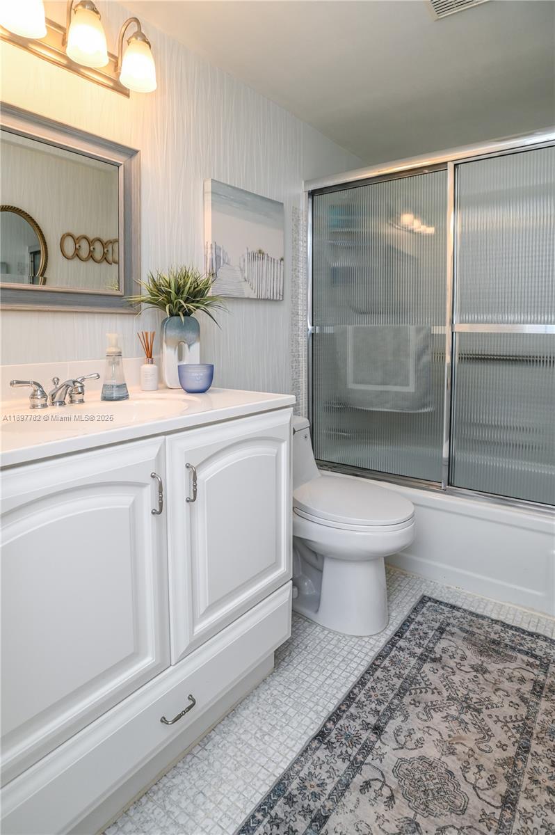 Stunning 2-bedroom 2-bath condo nestled in the heart of Golden Isles. Beautiful views from your screen-in patio of the relaxing pool & garden. Condo sold furnished. The building has undergone the 50-yr. recertification & all assessments are paid. The unit has a beautiful updated kitchen, bathrooms have been updated with modern fixtures. Living & dining room features beautiful tile floors and bedrooms have laminate floors. Conveniently located just minutes from shopping, restaurants, and beach, condo provides easy access to all amenities. Enjoy the pool area, shuffleboard, pickleball & picnic area on the canal just across the building. You are right next to the Golden Isle Tennis Center & Park, making it a must-see for those seeking a convenient lifestyle in the heart of Hallandale Beach.