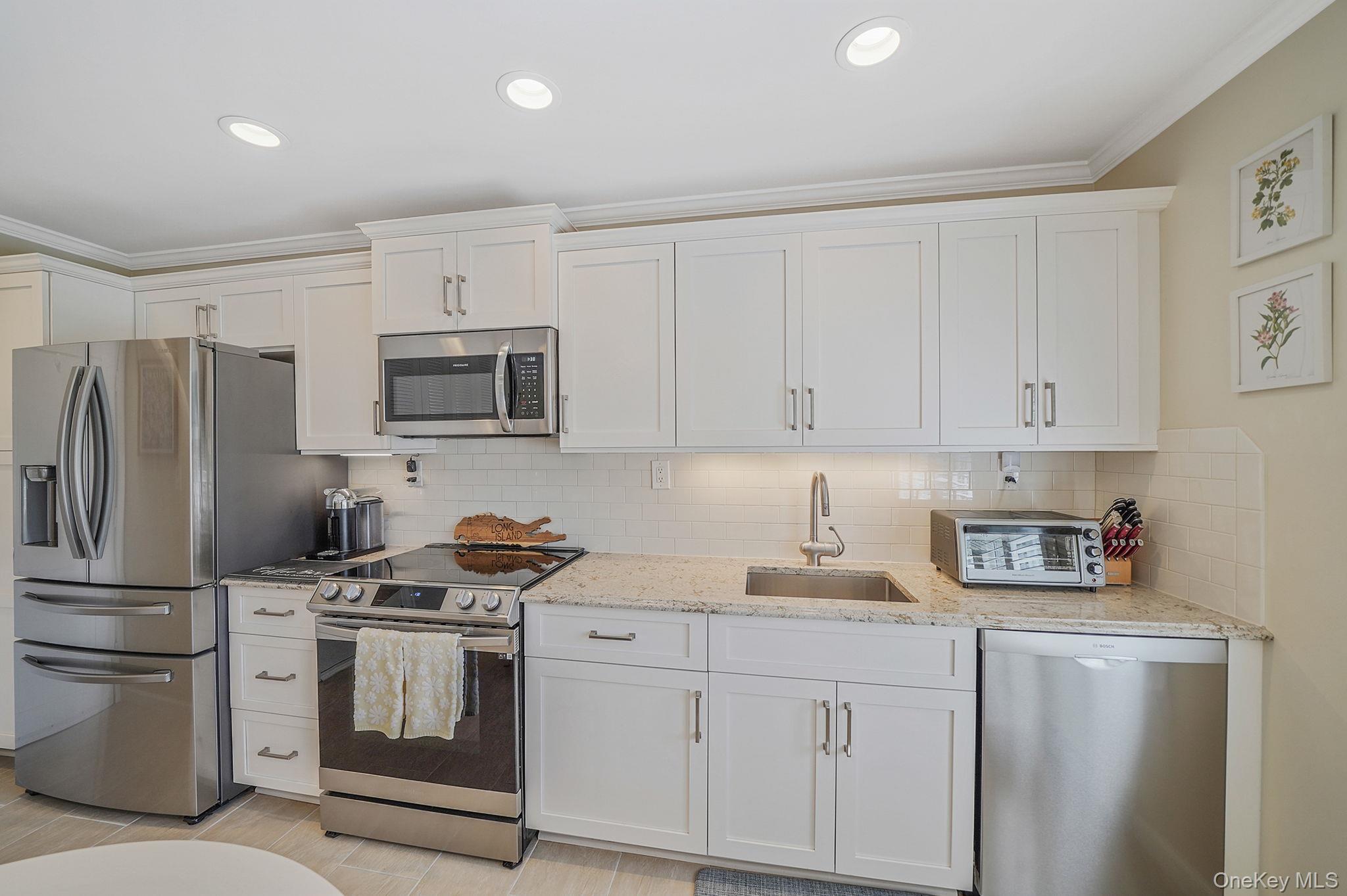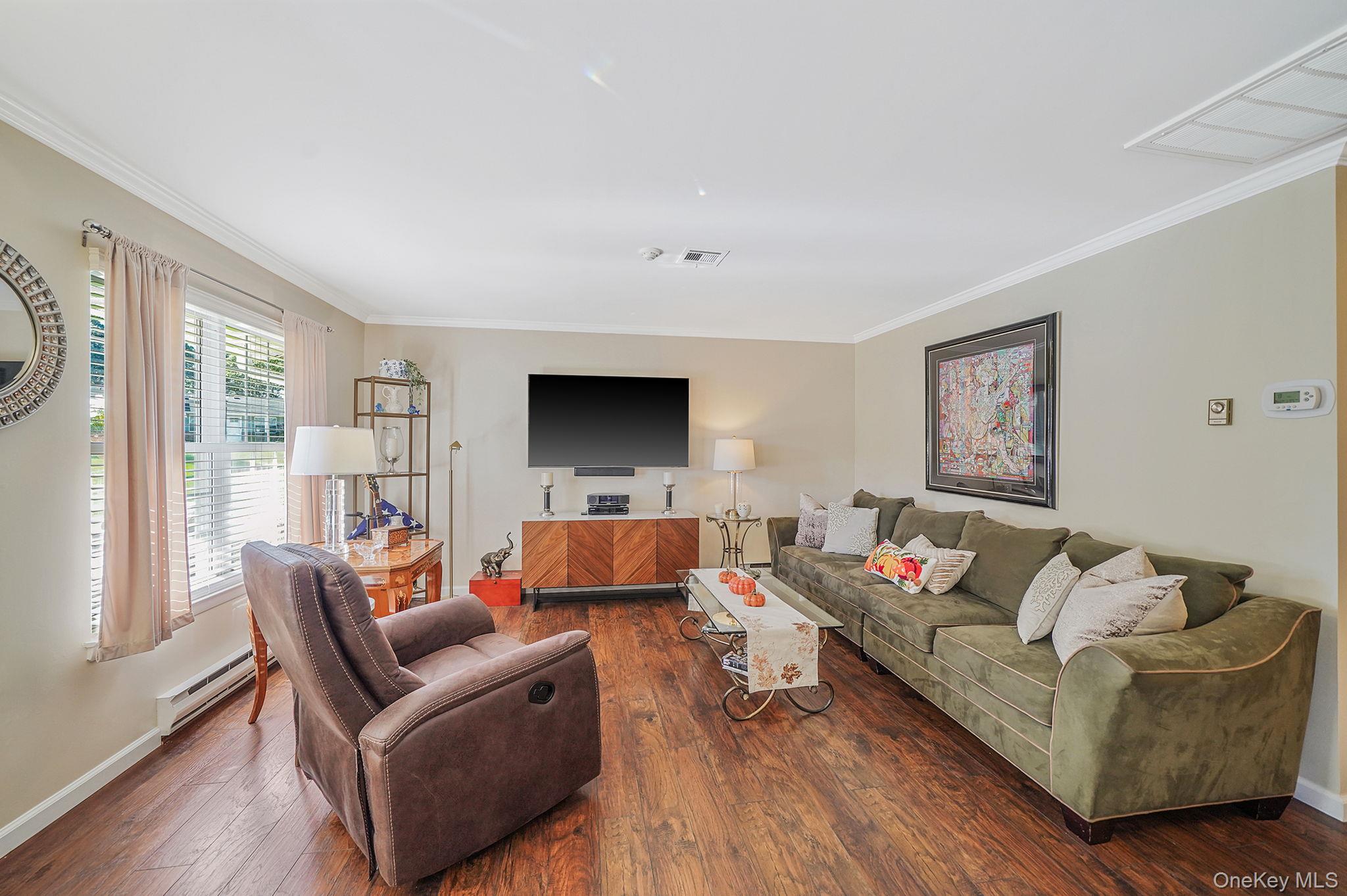 Stunning bright and sunny 2br 1fbth open floor plan Oakmont Corner Unit with garage in a 55+ Leisure Village 24hr gated community. Turn-key home that features laminate floors, renovated bathroom (2019) with quartz's vanity and grab bars, hi-hats, crown molding, plantation shutters (2yrs old), Garber blinds, Cambria quartz's counter tops, subway tile backsplash, microwave (3 months old), dishwasher, stove, refrigerator and washer (all 3yrs old), dryer (6yrs old), central air (2016-Lennox/large unit with new duct work), electric heat with thermostat in each room, electric hot water heater (3yrs old), front storm door (2017), garage storm door (2023), roof (5yrs old), windows (12 yrs old), storage space in the attic and garage. Entertain your family and friends on the largest Cambridge patio in the community. The club house offers so much to do from 9 hole golf course, ceramic club, fitness room, bocce ball, shuffle board, horseshoe, inground pool and so much more. Want to join a club well they have 48 to join. This community also offers many social events to be part of. Pet friendly as well, Don't miss out on this beautiful gem and call it yours today!!